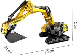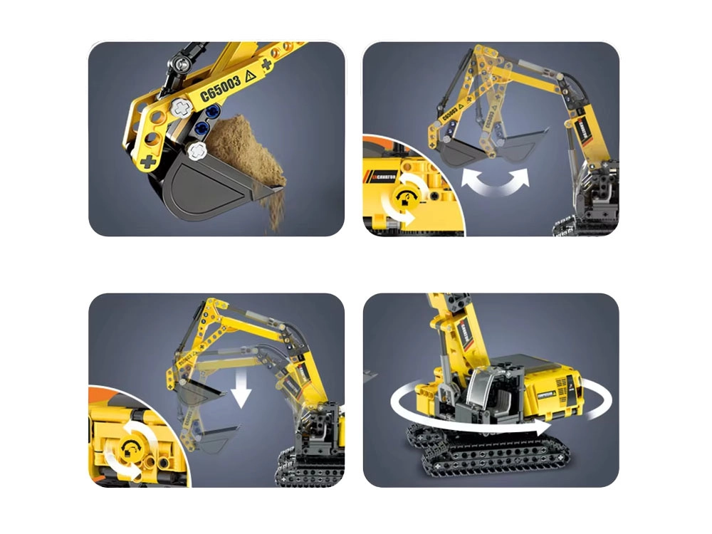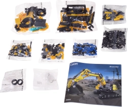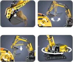 Η κατασκευή είναι ομαλή χάρη στα απόλυτα εφαρμοστά κομμάτια και το τελικό αποτέλεσμα είναι στέρεο και σταθερό. Ο κίτρινο‑γκρι χρωματισμός και οι αυτοκόλλητες ετικέτες τονίζουν τη ρεαλιστική εμφάνιση. Ο εκσκαφέας διαθέτει λειτουργικό βραχίονα με δυνατότητα ανύψωσης, κινητό κάδο, καμπίνα που περιστρέφεται 360° και ερπύστριες για ομαλή κίνηση.