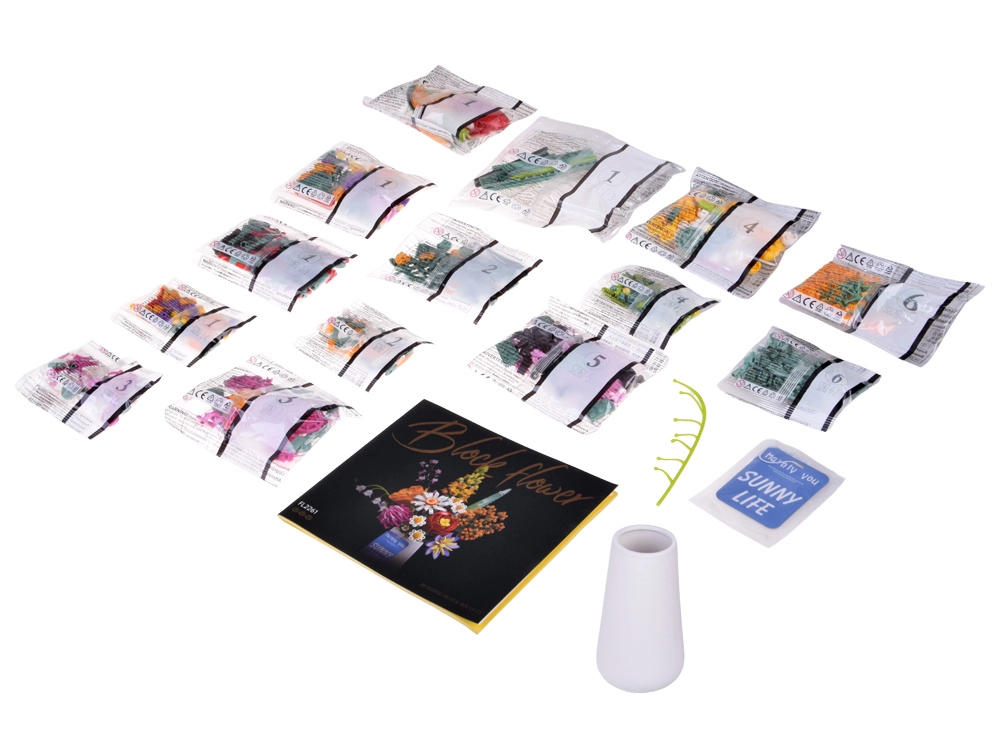 Αριθμημένα σακουλάκια και ξεκάθαρες εικονογραφημένες οδηγίες εξασφαλίζουν ομαλή κατασκευή. Συναρμολογήστε έως και 10 τύπους λουλουδιών και φύλλων και δημιουργήστε μια μοναδική σύνθεση.