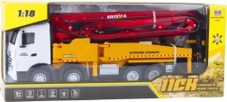 Ρεαλιστική RC μπετονιέρα με αντλία HUINA σε κλίμακα 1:18 που προσφέρει εξαιρετική εμπειρία για τους λάτρεις των κατασκευαστικών μηχανημάτων. Διαθέτει 11 κανάλια για πλήρη έλεγχο, περιστρεφόμενη πλατφόρμα 630°, εξακλινόμενο βραχίονα έως 120 cm, σταθεροποιητικά υποστηρίγματα και λειτουργία εκνέφωσης νερού. Με έλεγχο 2.4 GHz, φωτεινά και ηχητικά εφέ και ισχυρό συσσωρευτή, η διασκέδαση είναι ρεαλιστική και μεγάλης διάρκειας.
