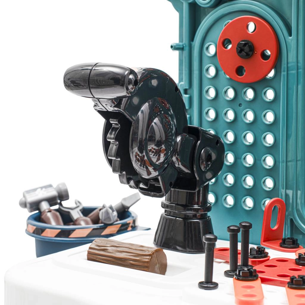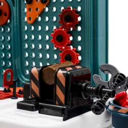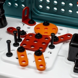 Το σετ με 103 κομμάτια επιτρέπει βίδωμα, σύσφιξη, κοπή και «τρύπημα» μέσα από ευφάνταστα project. Το εργαστήριο είναι συμπαγές, ελαφρύ και τοποθετείται εύκολα στο παιδικό δωμάτιο. Εξαιρετική επιλογή για την ανάπτυξη της κινητικότητας, της φαντασίας και των πρώτων εργασιακών συνηθειών.
