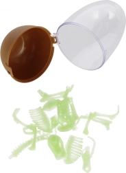 Τα μικρά εξαρτήματα από ανθεκτικό πλαστικό είναι διαμορφωμένα σαν ρεαλιστικά οστά – από το κρανίο και τη σπονδυλική στήλη μέχρι τα άκρα. Μετά την έκθεση στο φως, ο σκελετός λάμπει εντυπωσιακά στο σκοτάδι, προσθέτοντας μια μυστηριώδη ατμόσφαιρα και ενισχύοντας τη φαντασία των παιδιών. Τέλειο ως δώρο, για συλλογή ή ως ευφάνταστη διακόσμηση για το παιδικό δωμάτιο.