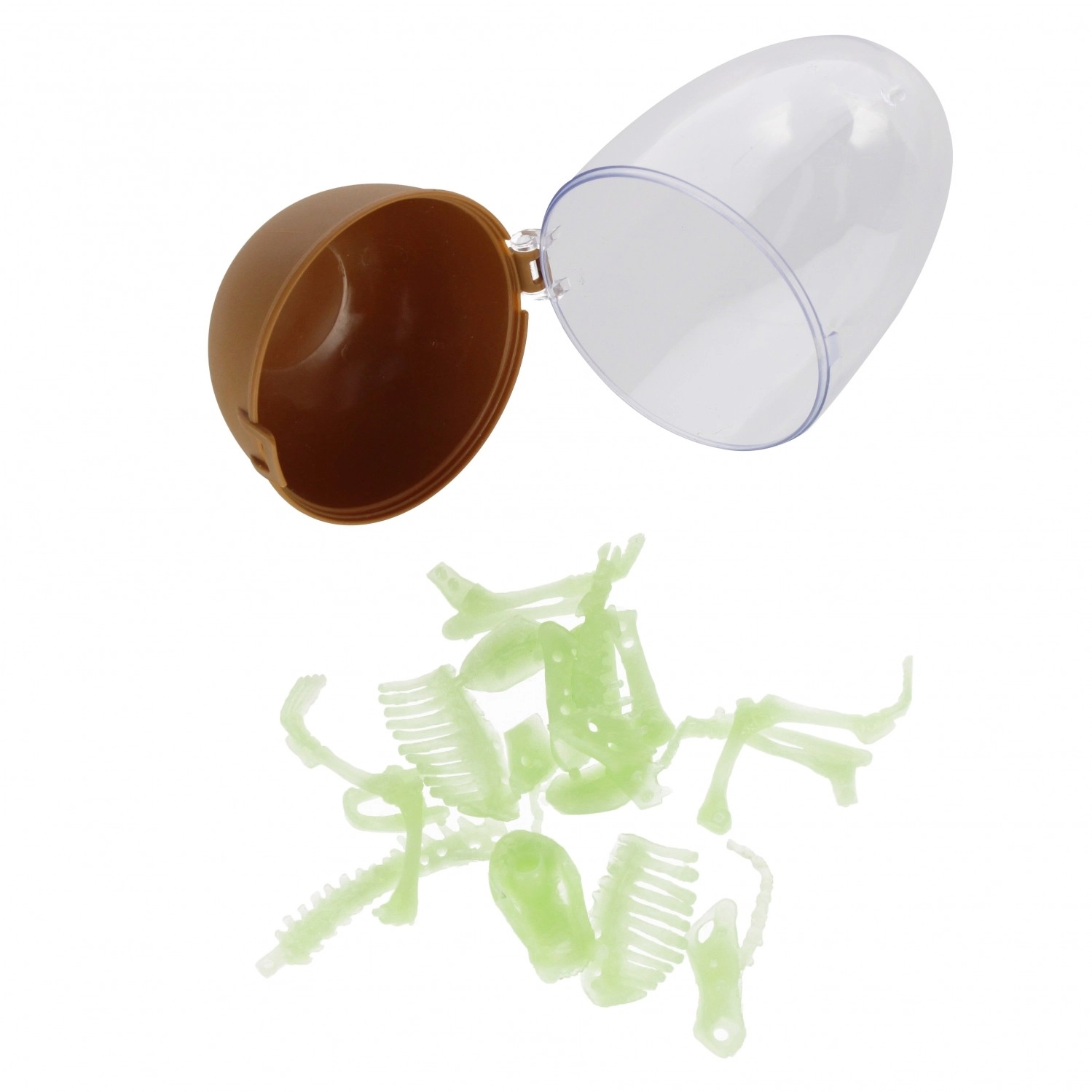 Οι μικροί εξερευνητές θα αγαπήσουν τη συναρμολόγηση παράξενων πλασμάτων! Αυτό το κατασκευαστικό σετ κρύβει μέσα σε ένα συμπαγές αυγό όλα τα κομμάτια που χρειάζονται για τη συναρμολόγηση του σκελετού δεινόσαυρου. Τα κομμάτια κουμπώνουν εύκολα μεταξύ τους και η τελική φιγούρα είναι ελαφριά αλλά ανθεκτική. Το διάφανο τμήμα του αυγού επιτρέπει να έχετε πάντα το μοντέλο σε κοινή θέα.