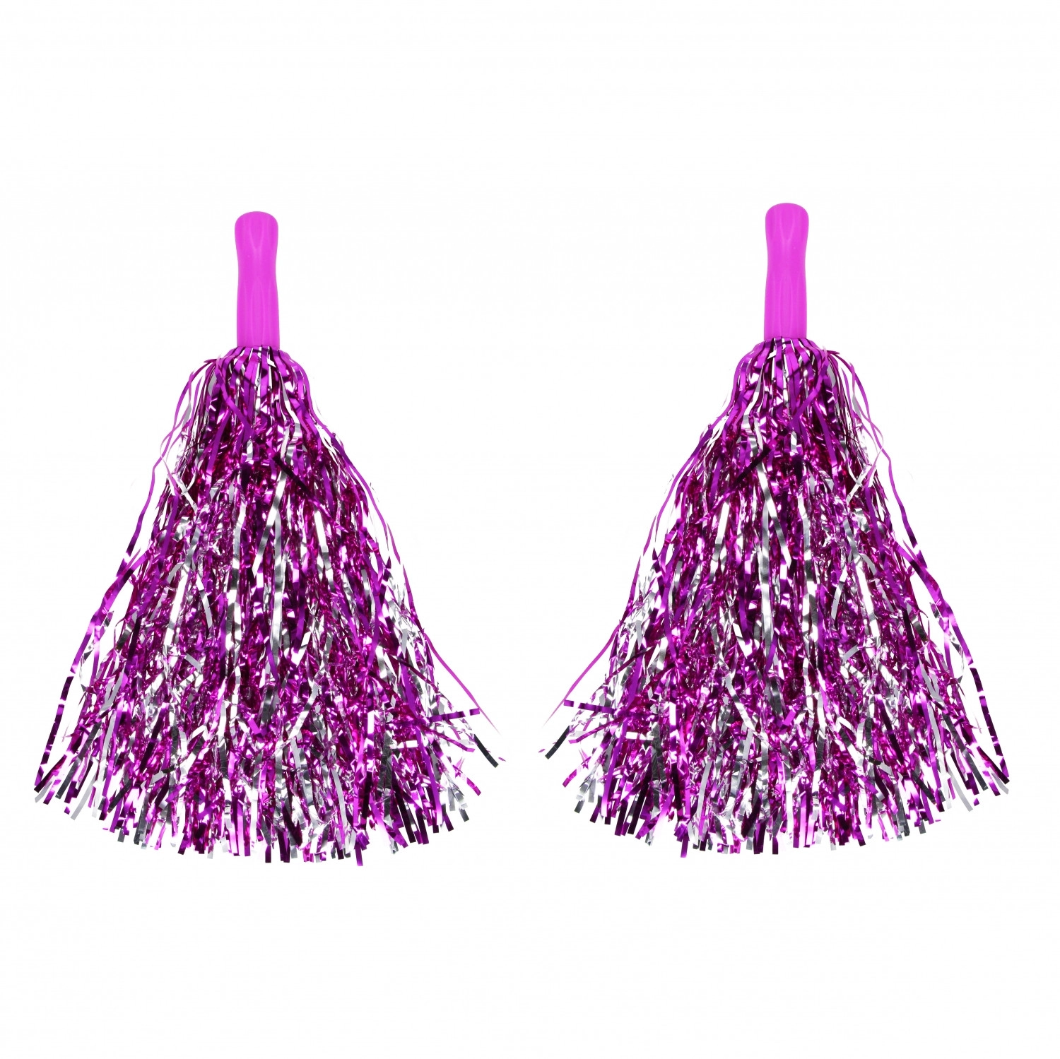 Προσθέστε ενέργεια και στυλ στις εμφανίσεις σας. Αυτά τα ροζ pom-poms με μεταλλικές τρέσες σε ροζ και ασημί δημιουργούν εντυπωσιακό οπτικό αποτέλεσμα στο κούνημα, ιδανικό για γιορτές, σχολικές εκδηλώσεις, αθλητικούς αγώνες και χορογραφίες.