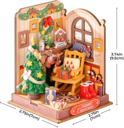 Αυτό το λεπτομερές DIY σετ φέρνει τη γοητεία των Χριστουγέννων σε κάθε εσωτερικό χώρο. Πάνω από το τζάκι κρέμεται ημερολόγιο με την ημερομηνία 25 Δεκεμβρίου, γύρω λάμπουν γιρλάντες και στεφάνι, καίει ένα κερί και κάτω από το δέντρο περιμένουν δώρα. Τη σκηνή συμπληρώνουν μια κουνιστή πολυθρόνα για τον παππού, φωτογραφίες στους τοίχους, γλυκίσματα και μια γάτα που ξεκουράζεται στο παράθυρο.