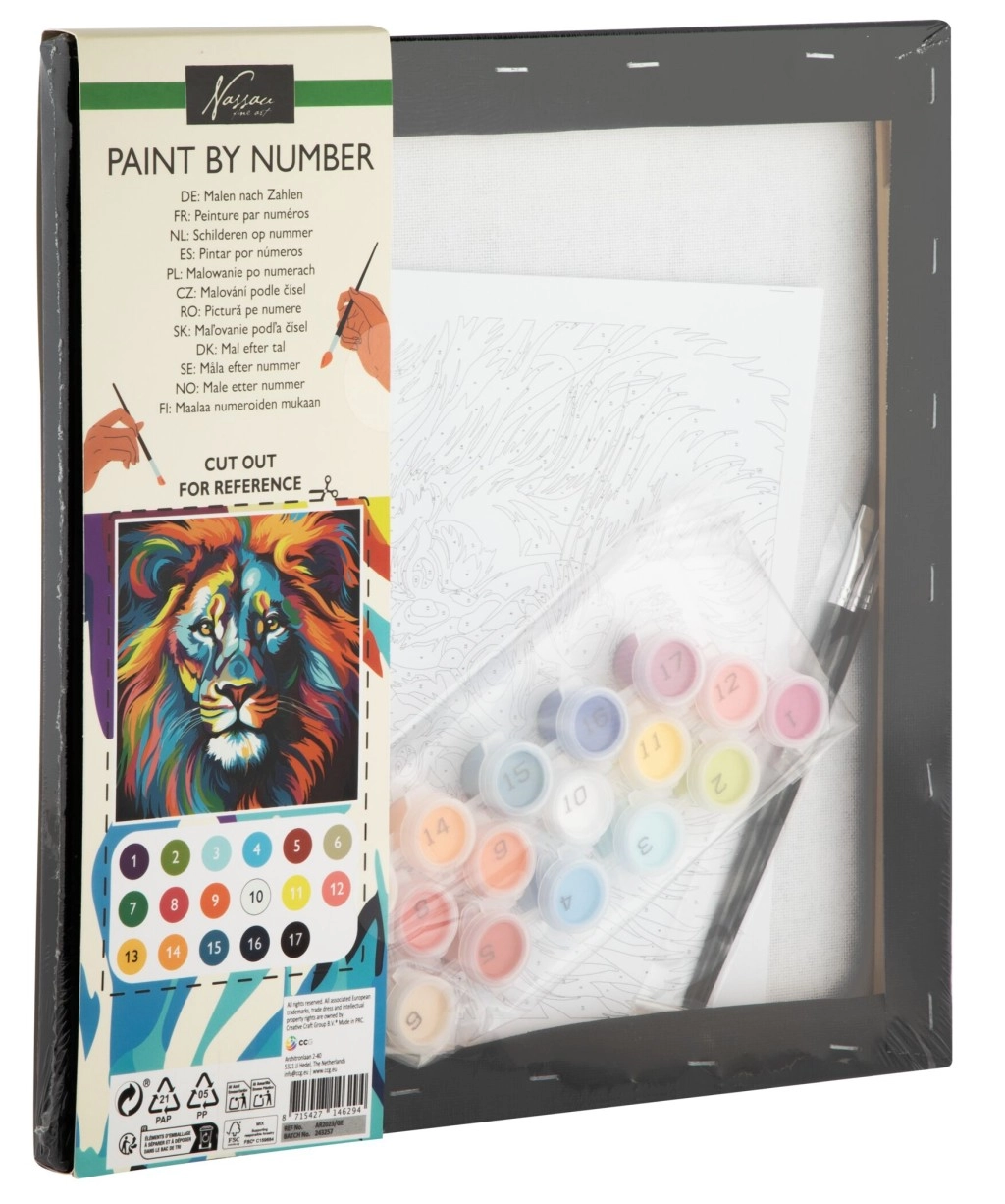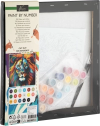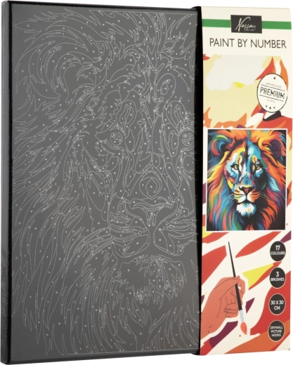 Ανακαλύψτε μια χαλαρωτική, δημιουργική εμπειρία με θέμα το λιοντάρι σε μαύρο καμβά. Το σετ για ζωγραφική με αριθμούς επιτρέπει ακόμη και σε αρχάριους να δημιουργήσουν εύκολα ένα εντυπωσιακό έργο. Ακολουθώντας τους ευδιάκριτα σημειωμένους αριθμούς, θα χρωματίσετε κάθε επιφάνεια με τις αντίστοιχες αποχρώσεις και θα πετύχετε επαγγελματικό αποτέλεσμα. Ιδανικό για ανάπτυξη υπομονής, ακρίβειας και προσοχής στη λεπτομέρεια, καθώς και για ευχάριστη χαλάρωση.