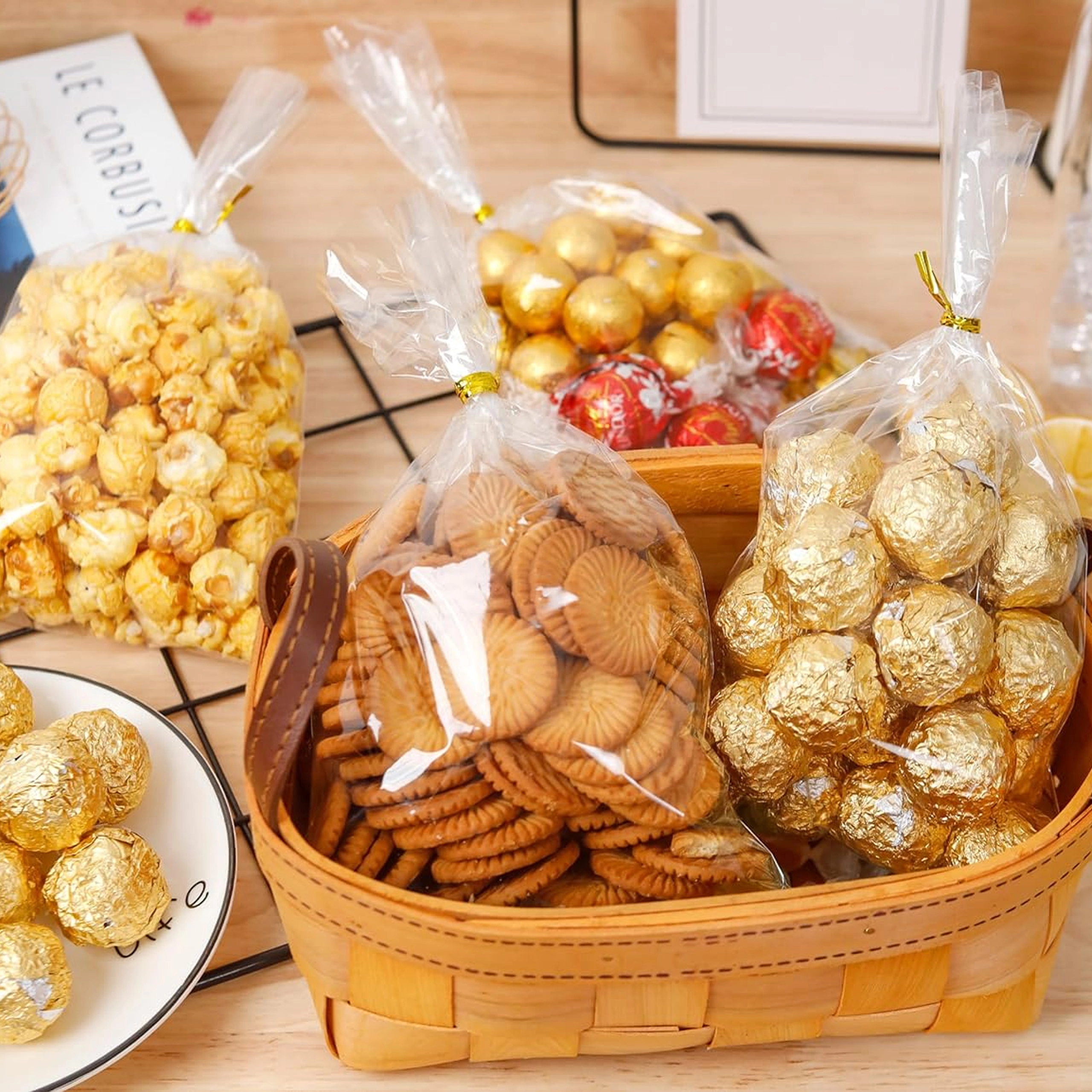 Διαφανή σακουλάκια δώρου από OPP με εξαιρετική διαύγεια και καθαρή εμφάνιση, που αναδεικνύουν άψογα τα συσκευασμένα αντικείμενα. Είναι πιστοποιημένα για επαφή με τρόφιμα, κατάλληλα για γλυκίσματα, μπισκότα ή σπιτικές λιχουδιές, αλλά και για κοσμήματα, αξεσουάρ, υφάσματα και μικροηλεκτρονικά.