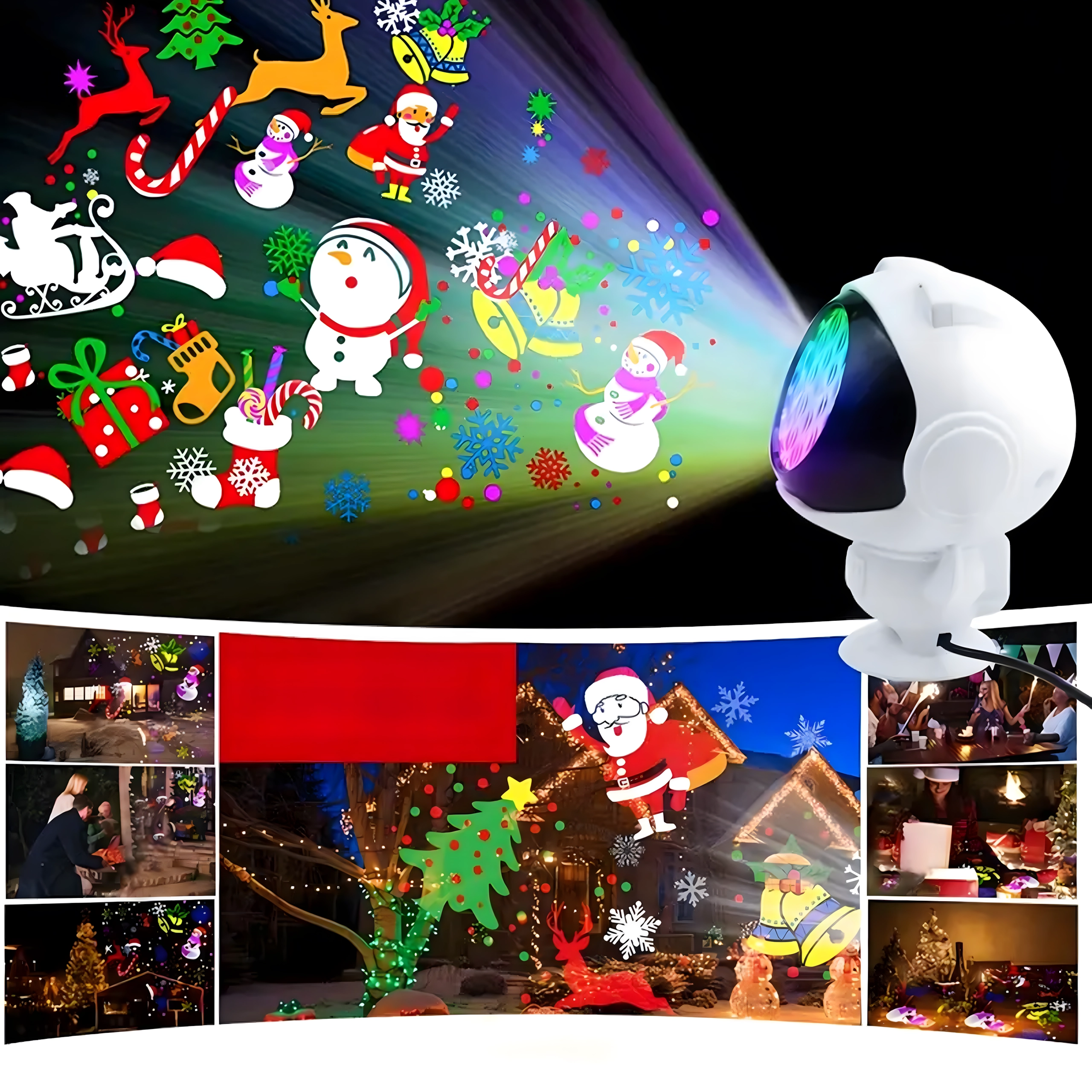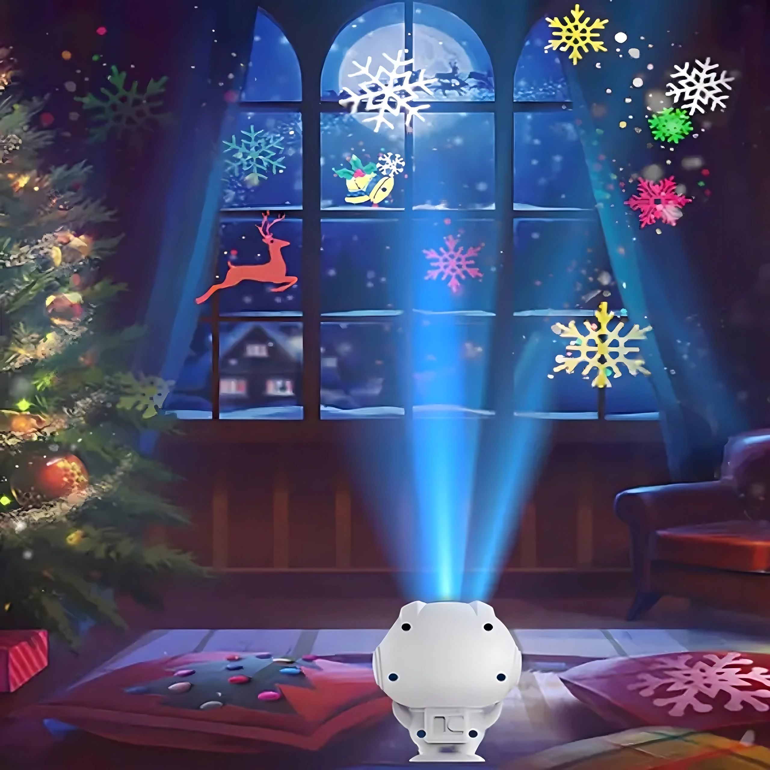 Ένας χαριτωμένος προβολέας σε σχήμα αστροναύτη μεταμορφώνει κάθε δωμάτιο σε χειμωνιάτικο παραμύθι. Προσφέρει έως και 16 δυναμικά μοτίβα – από νιφάδες χιονιού και χιιονάνθρωπους, τάρανδους μέχρι και Άγιο Βασίλη. Ιδανικός ως χριστουγεννιάτικη διακόσμηση, νυχτερινό φωτάκι και πρωτότυπο δώρο.