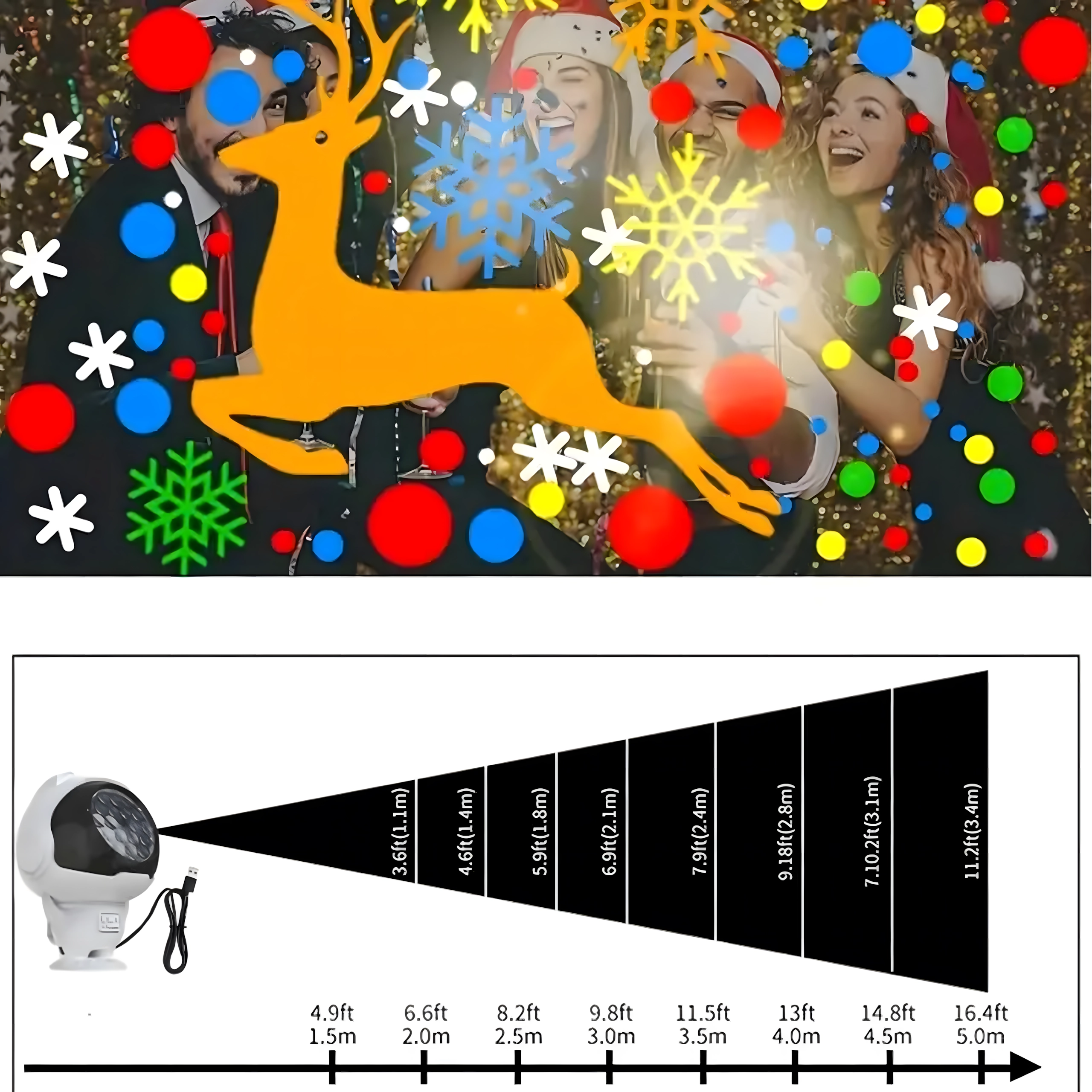 - 16 προβαλλόμενα μοτίβα: νιφάδες χιονιού, χιονάνθρωποι, τάρανδοι, δώρα, ζαχαρόκανε, Άγιος Βασίλης και άλλα.