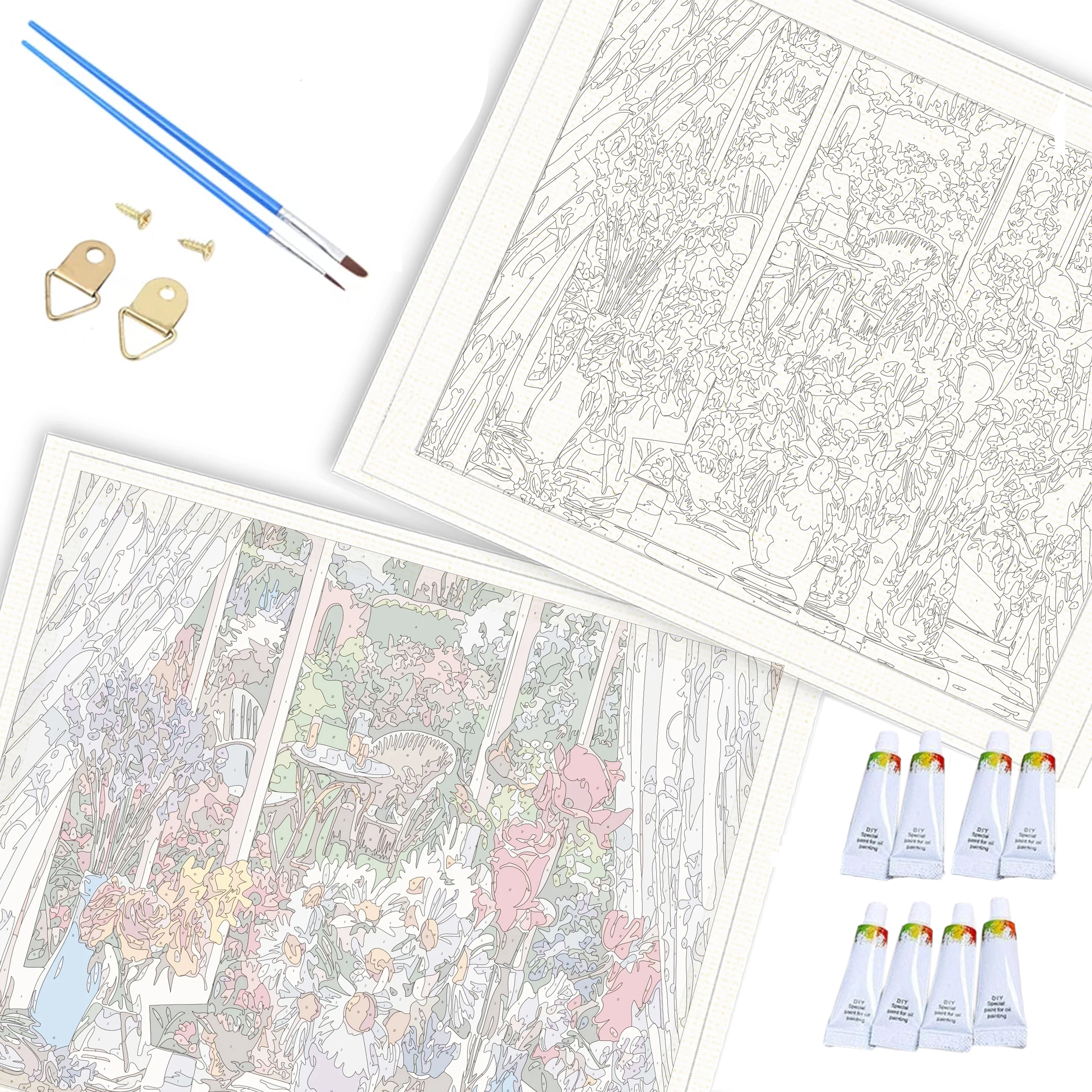 Πλήρες σετ με αριθμημένο καμβά, ακρυλικά χρώματα, πινέλα και αξεσουάρ ανάρτησης. Ξεκινήστε να δημιουργείτε αμέσως μετά το άνοιγμα.