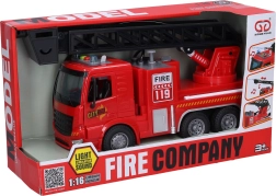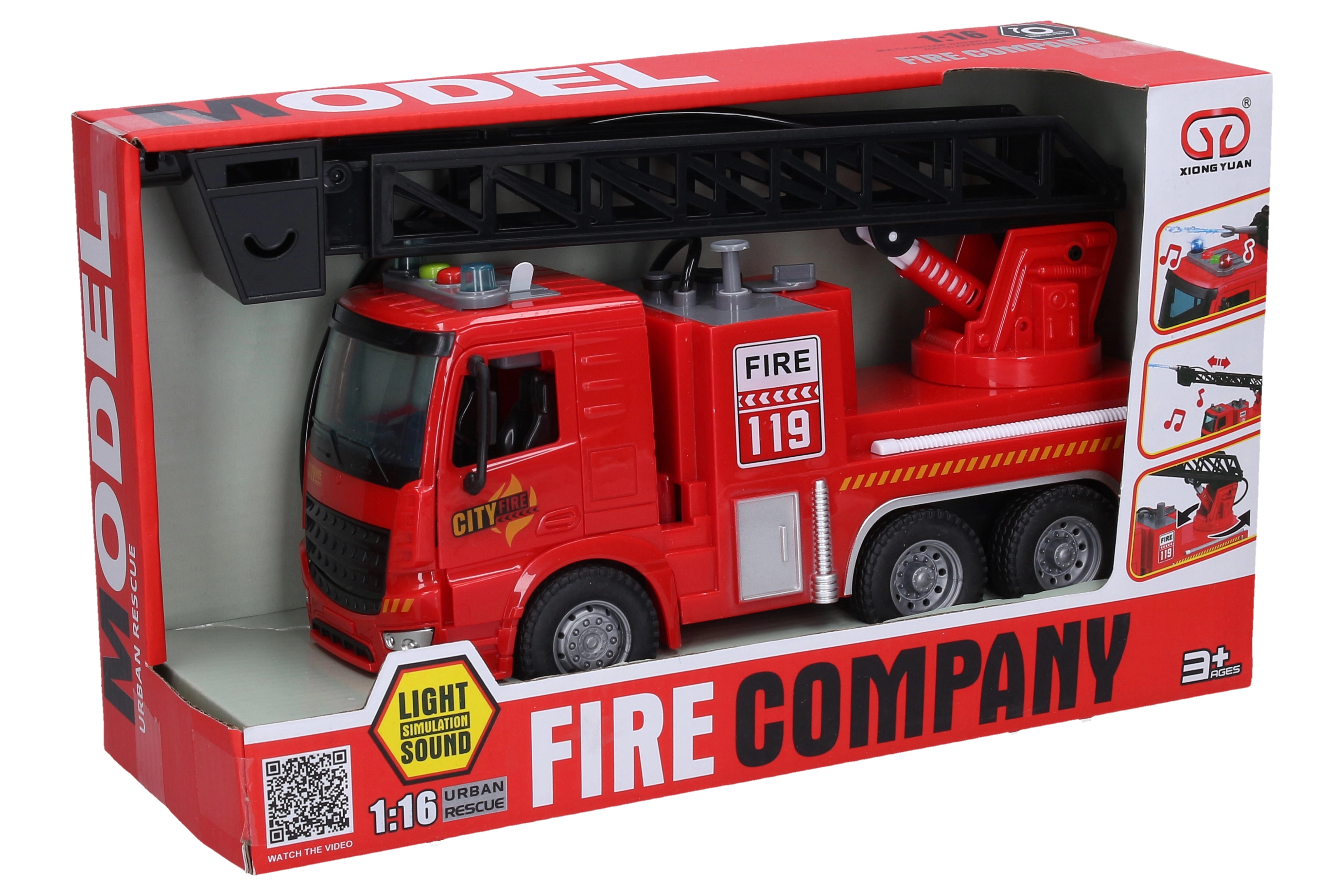 Ρεαλιστικό πυροσβεστικό όχημα μήκους 30 εκ. που προσφέρει στα παιδιά άφθονη δράση: εκτοξεύει νερό από ενσωματωμένη δεξαμενή, κινείται με μηχανισμό αδράνειας και διαθέτει φωτεινά και ηχητικά εφέ που ενεργοποιούνται με κουμπιά στην καμπίνα. Οι μπαταρίες περιλαμβάνονται στη συσκευασία, ώστε η διασκέδαση να ξεκινήσει αμέσως.
