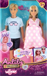 Το οικογενειακό σετ κούκλων από τη μάρκα Woopie προσφέρει στα παιδιά ώρες δημιουργικού παιχνιδιού. Περιλαμβάνει μαμά σε εγκυμοσύνη με μωρό στην κοιλιά, μπαμπά και νεογέννητο. Οι κούκλες έχουν στυλάτα ρούχα, μοντέρνα εμφάνιση και κινούμενα άκρα για εύκολο πόζαρισμα. Κατασκευασμένο από ασφαλή και ανθεκτικά υλικά, συσκευασμένο σε ελκυστικό κουτί δώρου.