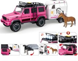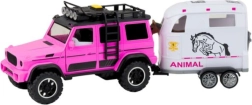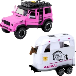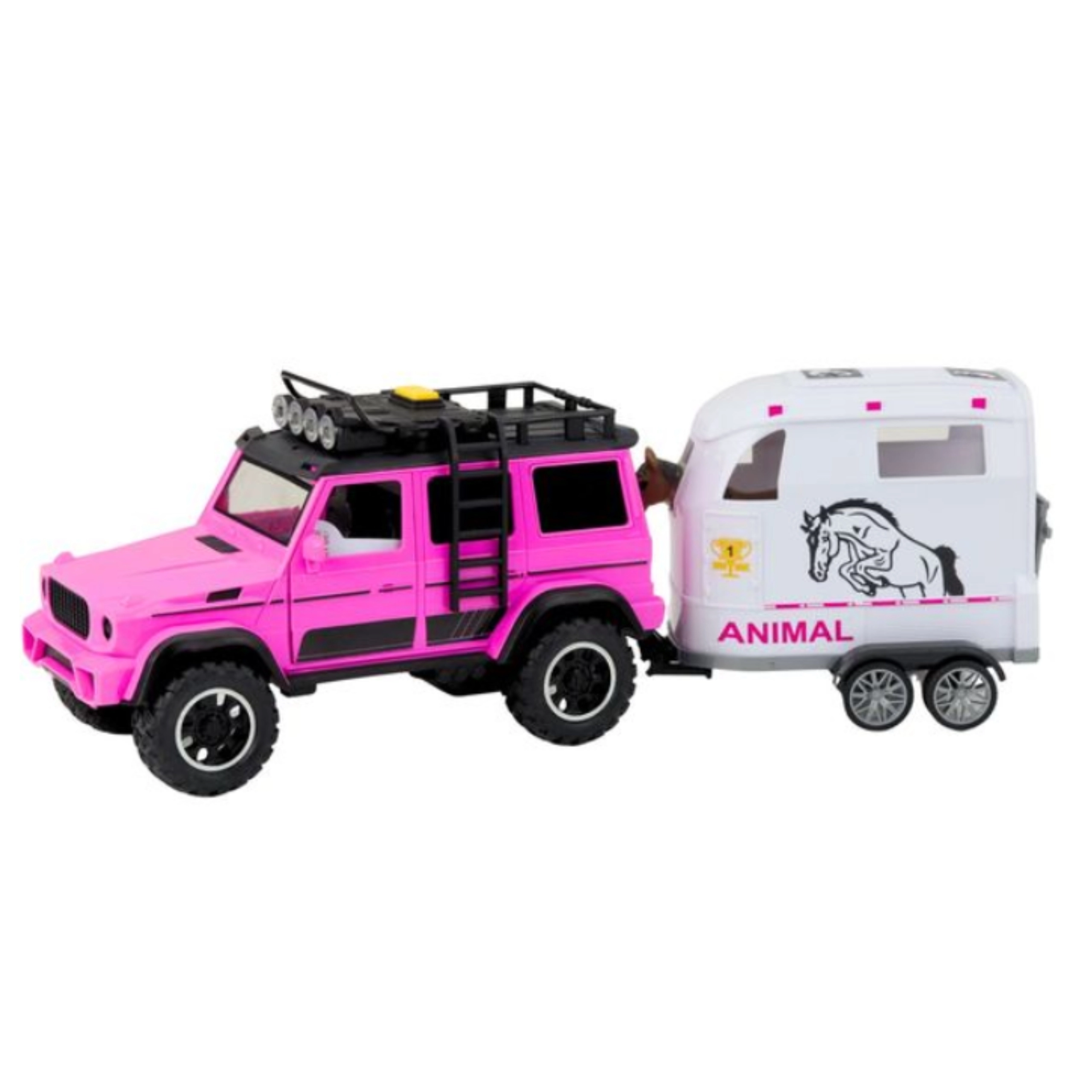 Αυτό το λεπτομερές σετ είναι ιδανικό για μικρούς λάτρεις των ζώων και των οχημάτων εκτός δρόμου. Ο ροζ-λευκός συνδυασμός χρωμάτων εντυπωσιάζει με την πρώτη ματιά και τα διαδραστικά στοιχεία όπως τα φώτα, οι ήχοι και οι ανοιγόμενες πόρτες προσφέρουν αυθεντική εμπειρία παιχνιδιού. Χάρη στο αποσπώμενο τρέιλερ, τα παιδιά μπορούν να παίζουν με το αυτοκίνητο, το τρέιλερ και το αλογάκι ξεχωριστά, αναπτύσσοντας τη φαντασία τους.