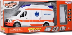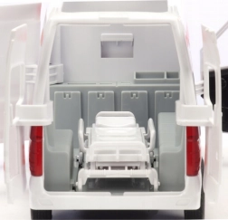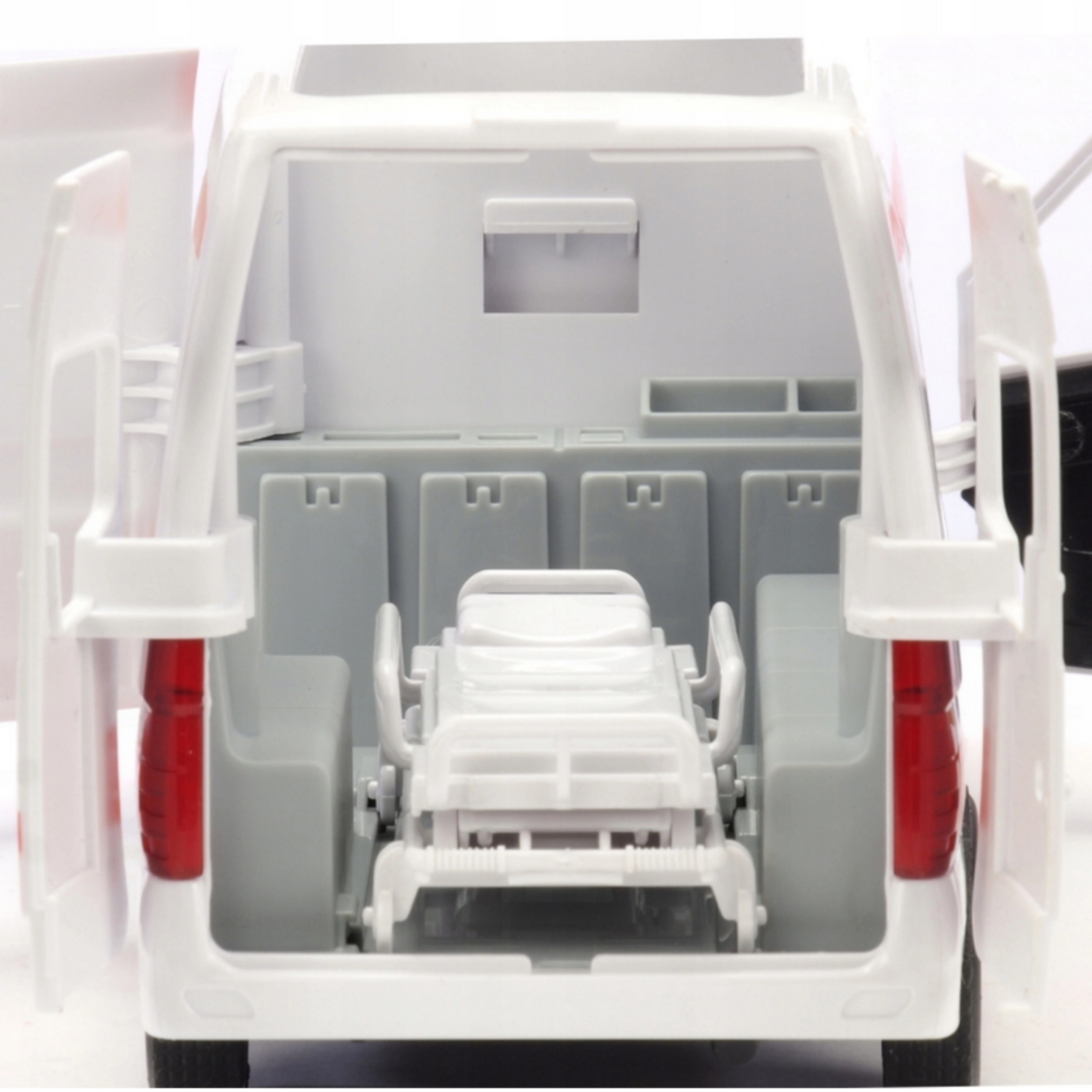 Αυτό το λεπτομερές ασθενοφόρο φέρνει στο παιδικό παιχνίδι την πραγματική ατμόσφαιρα μιας αποστολής διάσωσης. Με αναβοσβήνοντα φώτα στην οροφή και ήχους όπως σειρήνα, κόρνα, όπισθεν και εκκίνηση κινητήρα, κάθε διαδρομή είναι γεμάτη ένταση και ρεαλισμό. Οι μπροστινές και πίσω πόρτες καθώς και η ανοιγόμενη οροφή επιτρέπουν εύκολη πρόσβαση στην καμπίνα και στον χώρο διάσωσης.