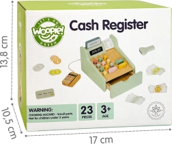Το ξύλινο ταμείο WOOPIE GREEN είναι ιδανικό παιχνίδι για παιδιά από 3 ετών που αγαπούν το παιχνίδι ρόλων σε μαγαζί, καφετέρια ή εστιατόριο. Χάρη στα λειτουργικά στοιχεία, όπως το συρόμενο συρτάρι για τα χρήματα, ο σαρωτής barcode και ο αναγνώστης καρτών πληρωμής, τα παιδιά μαθαίνουν τις βασικές αρχές πληρωμών και διαχείρισης χρημάτων με φυσικό και διασκεδαστικό τρόπο.