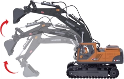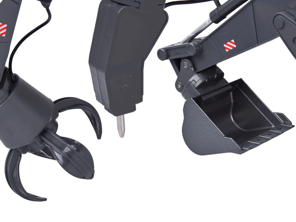 Περιλαμβάνονται τρία ανταλλάξιμα εξαρτήματα – κουτάλα, αρπάγη και σφυρί κατεδάφισης – που προσαρμόζουν εύκολα τον εκσκαφέα σε διάφορες εργασίες. Ο LED φωτισμός και τα ηχητικά εφέ μπορούν να ενεργοποιηθούν ή να απενεργοποιηθούν. Η μεταλλική κουτάλα, η πλαστική καμπίνα και η ανθεκτική κατασκευή υπόσχονται διαρκή διασκέδαση.
