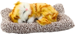 Το κοιμισμένο γατάκι στο μαξιλαράκι μοιάζει αληθινό – η απαλή απομίμηση γούνας, η τρυφερή έκφραση και η ήρεμη στάση δημιουργούν μια ζεστή διακόσμηση για παιδικό δωμάτιο, σαλόνι ή γραφείο. Ρεαλιστικές λεπτομέρειες σε αποχρώσεις πορτοκαλί με λευκές πινελιές εντυπωσιάζουν με την πρώτη ματιά.