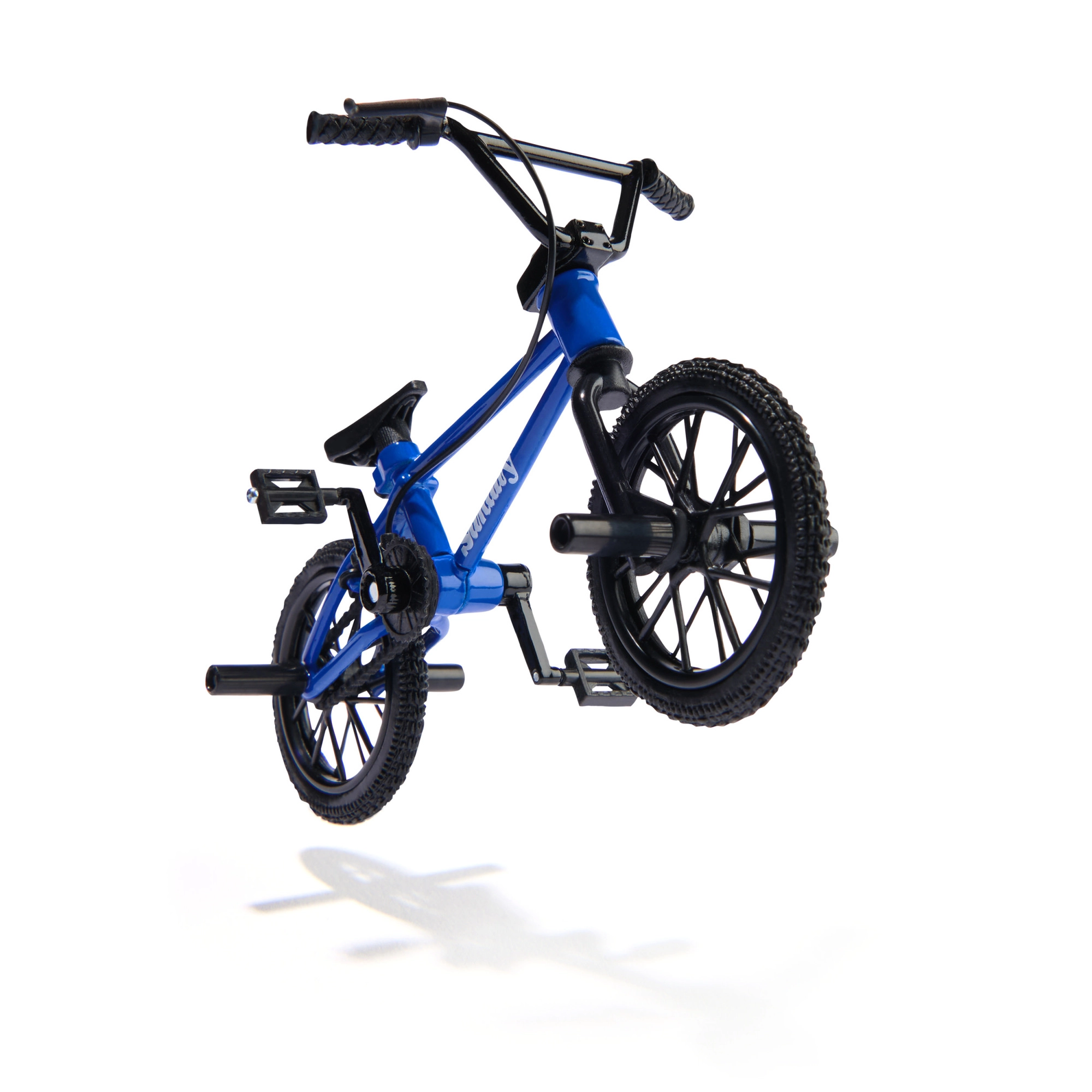Το μπλε finger BMX SUNDAY με λεπτομερές πλαίσιο, ακτίνες, πετάλια και pegs επιτρέπει εξάσκηση freestyle κόλπων απευθείας στο γραφείο.