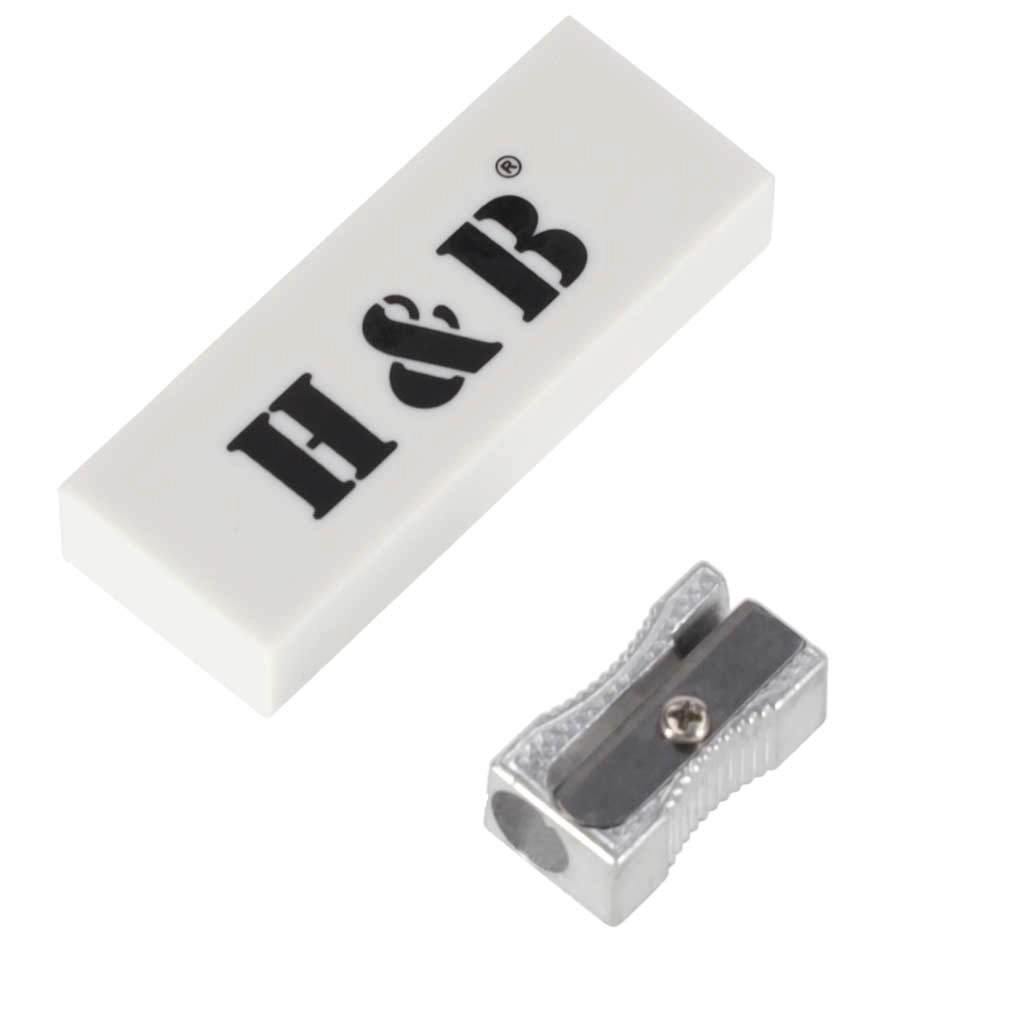 Το σετ περιλαμβάνει ποιοτική γόμα και μεταλλική ξύστρα, ώστε να σχεδιάζετε, να διορθώνετε και να ξύνετε όπου κι αν βρίσκεστε.