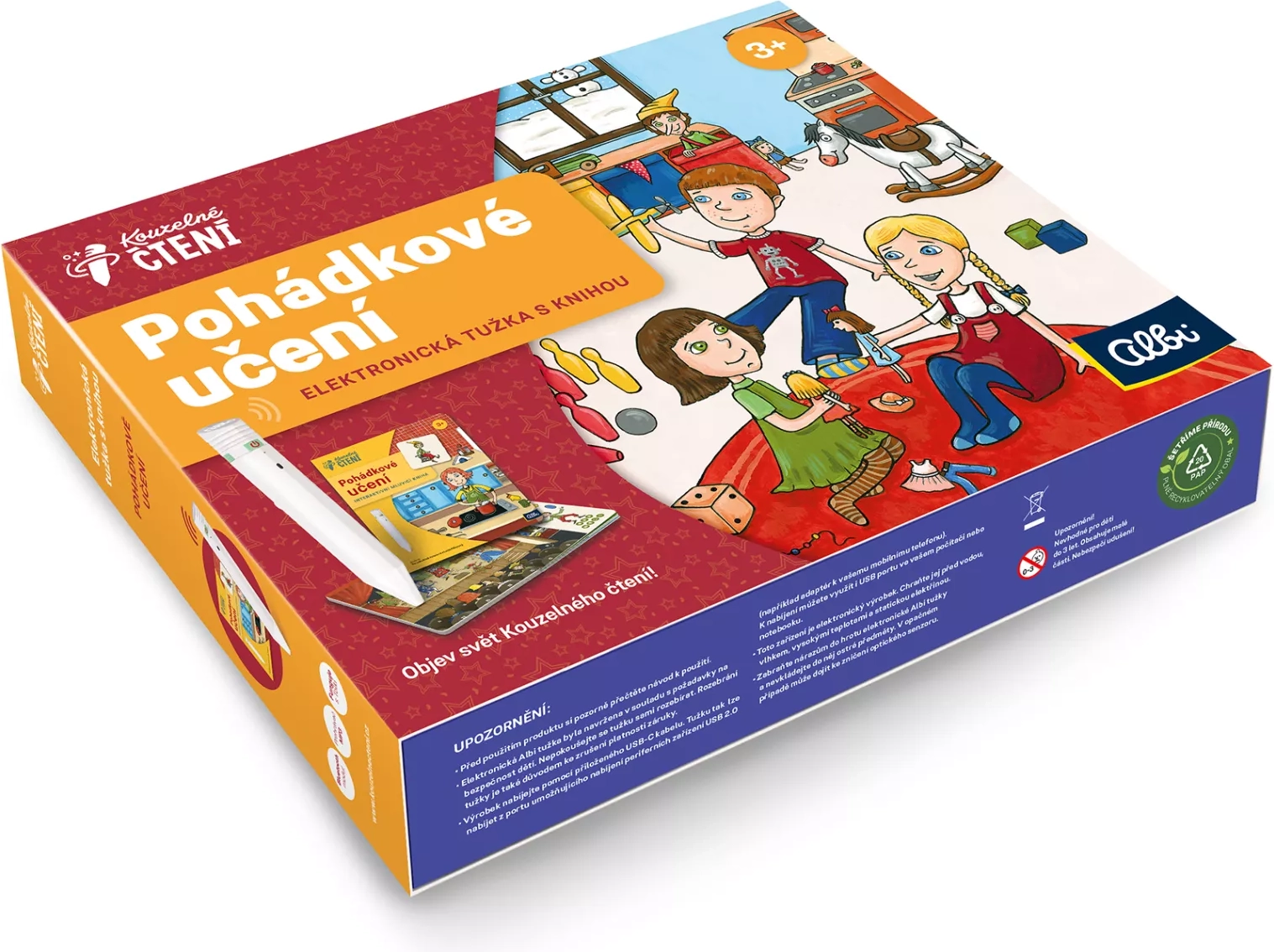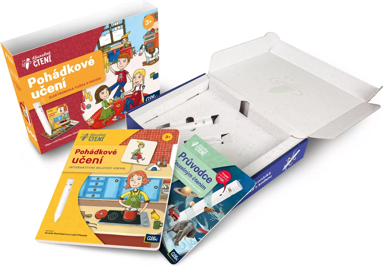 Το σετ είναι ιδανικό για τα πρώτα βήματα στο διάβασμα και την εξερεύνηση του κόσμου. Αρκεί να αγγίξετε με το ηλεκτρονικό στυλό τις εικόνες ή το κείμενο και αμέσως ακούγεται πληροφορία, ήχος ή μουσική. Έτσι τα παιδιά μπορούν μόνα τους να “διαβάσουν” ένα παραμύθι και ταυτόχρονα να αναπτύξουν ακουστική αντίληψη, λογική και λεξιλόγιο. Σε όλο το βιβλίο συνοδεύει ο ξωτικος Ζβιντάλεκ και το περιεχόμενο είναι ηχογραφημένο από επαγγελματίες ηθοποιούς (Veronika Khek Kubařová και Lukáš Příkazký).