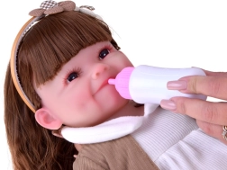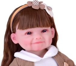 Η κούκλα εντυπωσιάζει με προσεγμένα χαρακτηριστικά, μεγάλα καστανά μάτια με πυκνές βλεφαρίδες και χαμόγελο με λακκάκια στα μάγουλα – αποπνέει φυσικότητα και γλυκύτητα.