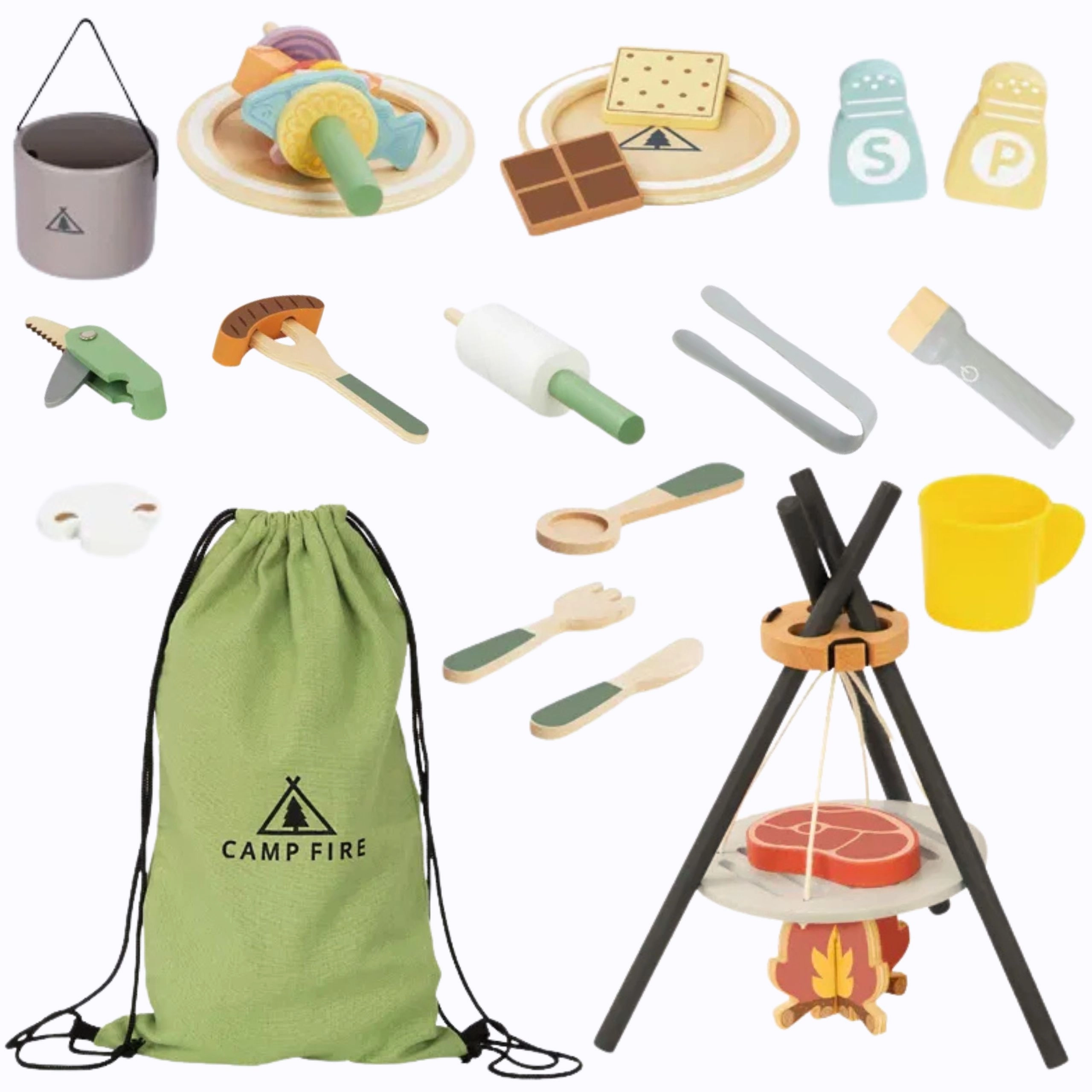 Αυτό το πρωτότυπο σετ μεταφέρει τα παιδιά στον κόσμο του κάμπινγκ: σκηνές, φωτιές και μαγείρεμα με φίλους. Τα ξύλινα κομμάτια είναι ευχάριστα στην αφή και ανθεκτικά, ενώ είναι ασφαλή για καθημερινό παιχνίδι. Ιδανικό για παιδιά από 3 ετών, που τους αρέσει να μιμούνται τους ενήλικες και να εξασκούν κοινωνικές δεξιότητες.