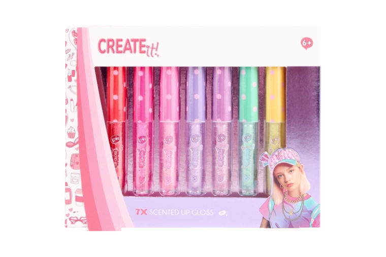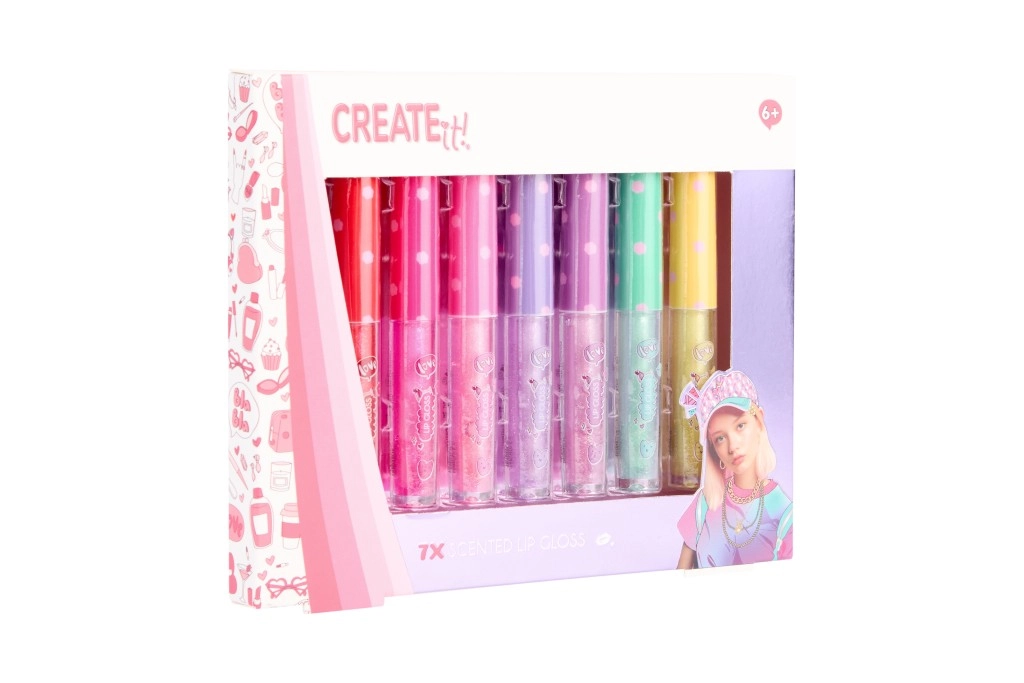 Ανακαλύψτε το παιχνιδιάρικο σετ των 7 αρωματικών lip gloss CREATE IT!, που χαρίζουν στα χείλη σας λαμπερή γυαλάδα, διακριτικές λάμψεις και ευχάριστο άρωμα. Κάθε σωληνάριο έχει διαφορετική απόχρωση και άρωμα, ώστε να επιλέγετε εύκολα τη χρωματική διάθεση που θέλετε. Ιδανικό ως δώρο ή για μοίρασμα με φίλες.