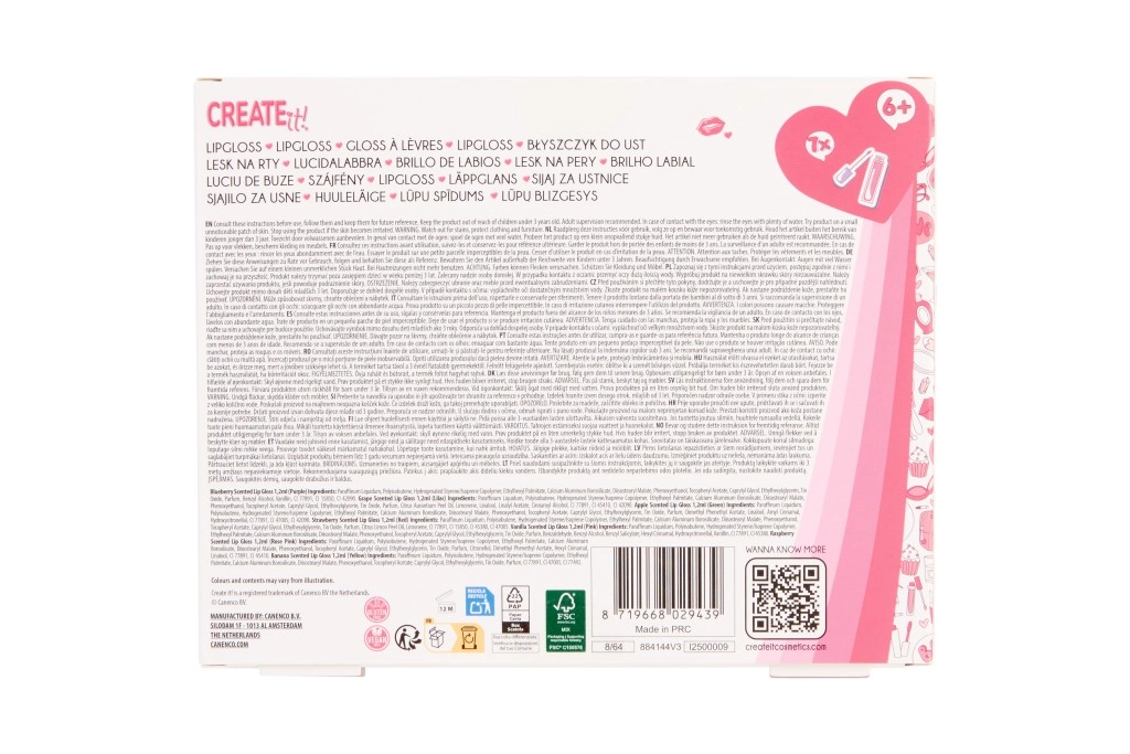 Το σετ CREATE IT! περιλαμβάνει επτά χρωματιστά lip gloss με λαμπερό, ιριδίζον τελείωμα που φωτίζουν υπέροχα τα χείλη και τους δίνουν διακριτική απόχρωση. Η ελαφριά υφή απλώνεται εύκολα και είναι κατάλληλη για καθημερινό μακιγιάζ. Κάθε gloss έχει διαφορετικό άρωμα, ώστε να απολαμβάνετε διασκέδαση και δημιουργικότητα στην επιλογή.