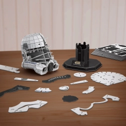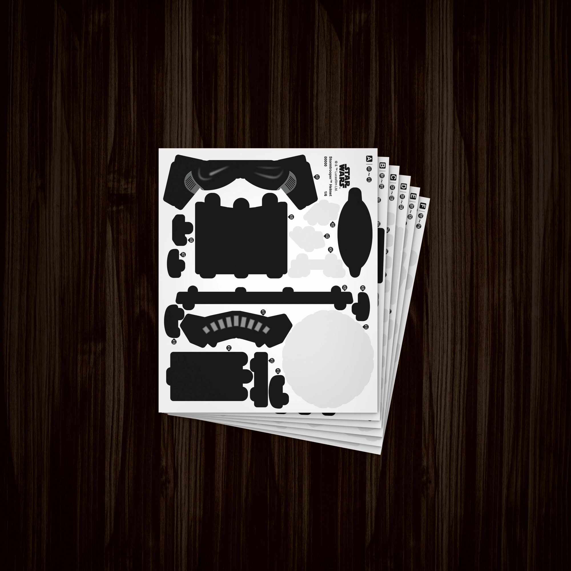 Αυτό το προσεκτικά σχεδιασμένο 3D μοντέλο κράνους Stormtrooper θα ενθουσιάσει κάθε θαυμαστή του Star Wars. Το σετ περιλαμβάνει 121 προκομμένα κομμάτια σε 6 καρτέλες, τα οποία αφαιρείτε εύκολα και συναρμολογείτε ακολουθώντας τις ξεκάθαρες οδηγίες. Το αποτέλεσμα είναι ένα συμπαγές μοντέλο διαστάσεων 12 × 12 × 16 cm με βάση και πινακίδα ονόματος για εντυπωσιακή έκθεση.