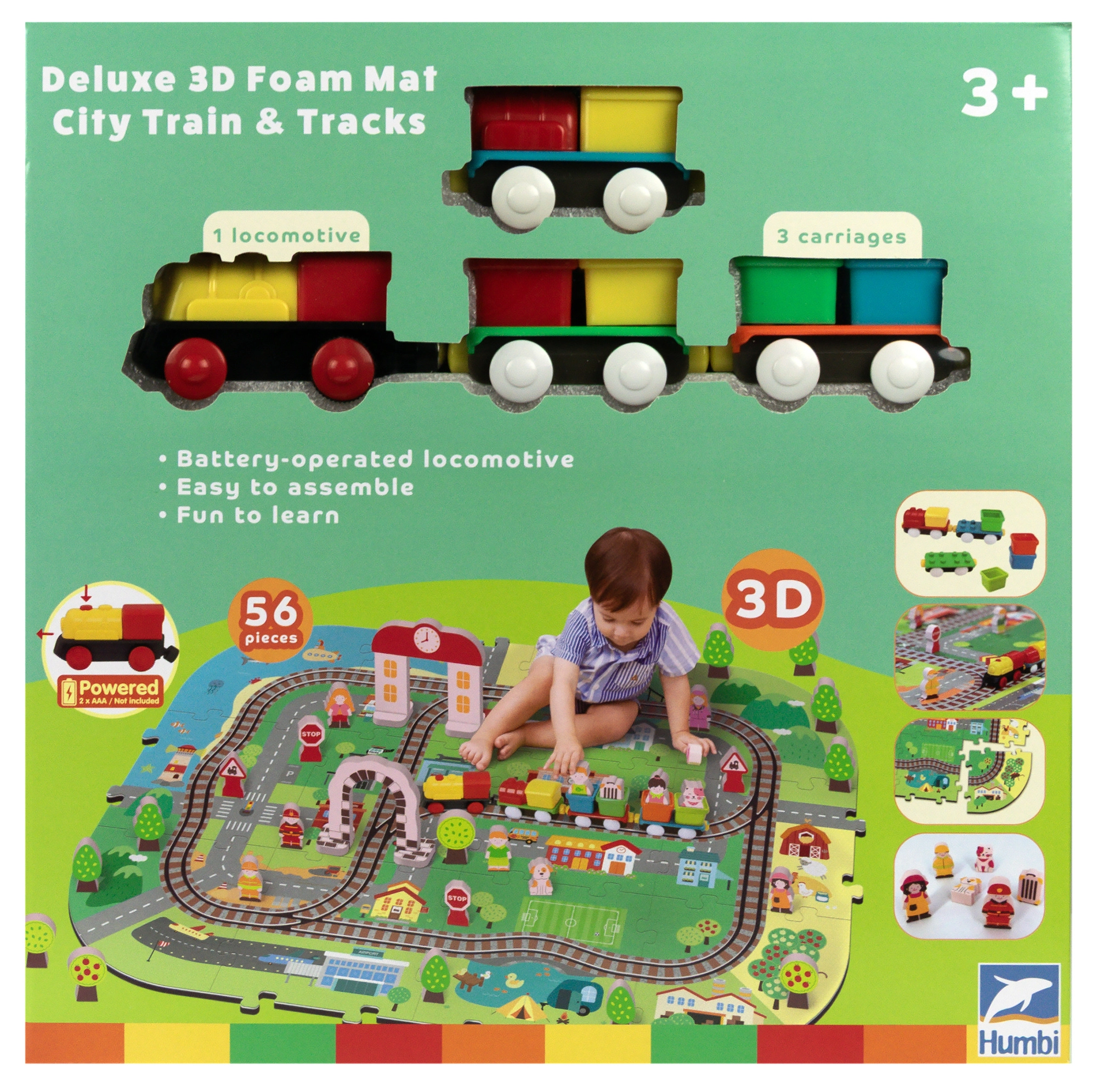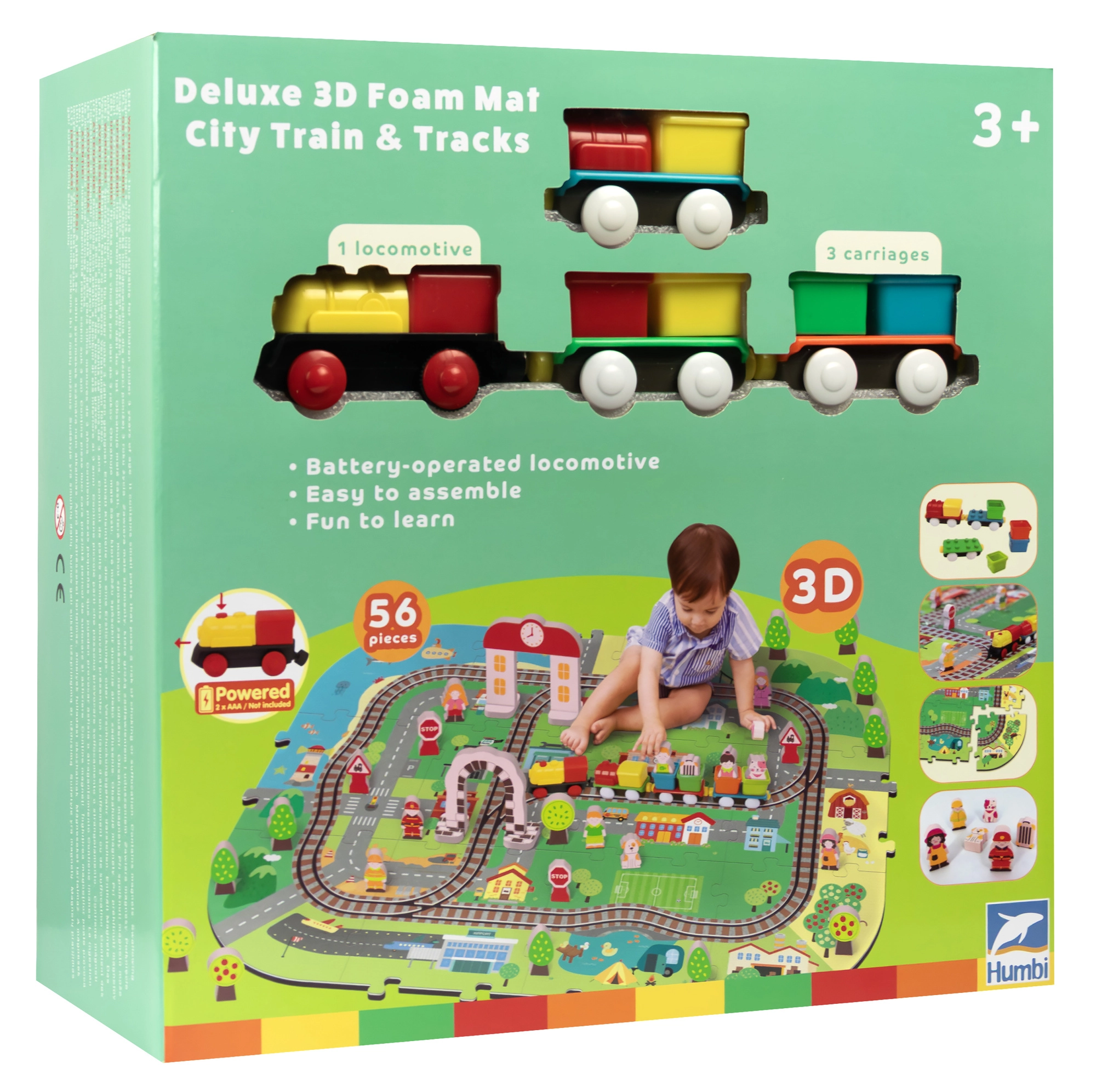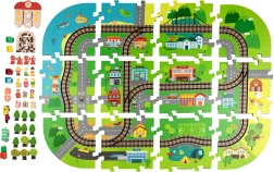 Συνδέστε τα κομμάτια σαν παζλ και δημιουργήστε τη δική σας πόλη με δρόμους, ράγες, κτίρια και φύση. Τα ανθεκτικά κομμάτια EVA κρατούν το σχήμα τους και καθαρίζονται εύκολα.