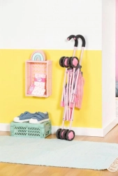 Πίσω από το κάθισμα θα βρείτε ένα πρακτικό δίχτυ αγορών για μικροαντικείμενα, μπουκαλάκι ή αγαπημένα παιχνίδια. Μετά το παιχνίδι, το καροτσάκι διπλώνει σε συμπαγείς διαστάσεις, ώστε να μη χρειάζεται σχεδόν καθόλου χώρο. Ταιριάζει άψογα σε κούκλες μεγέθους 36–43 cm και ενθαρρύνει το δημιουργικό, μεγάλης διάρκειας παιχνίδι.
