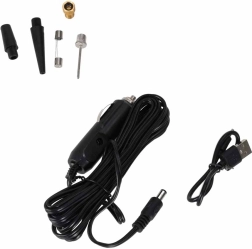 - ηλεκτρική αντλία/μίνι κομπρέσορας, σωλήνας, 5× εναλλάξιμο άκρο, καλώδιο USB, καλώδιο για αναπτήρα αυτοκινήτου, εγχειρίδιο