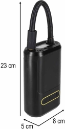 Στη συσκευασία θα βρείτε 5 εναλλάξιμα άκρα και σωλήνα, ώστε να προσαρμόζετε γρήγορα την πίεση στη βαλβίδα ελαστικών ή μπάλας. Με μέγιστη πίεση 150 PSI (10 bar) και γρήγορη φόρτιση μέσω USB‑C έχετε έναν αξιόπιστο βοηθό πάντα διαθέσιμο.
