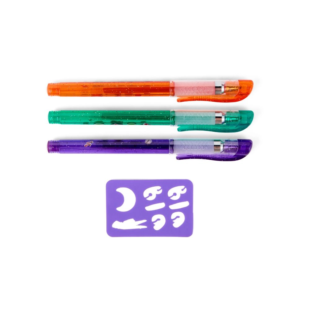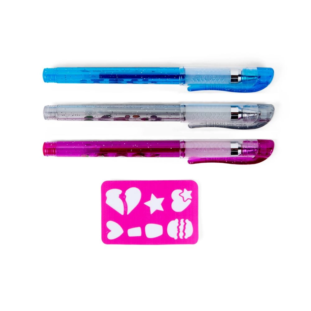 Τρία χρωματιστά τζελ στυλό με γκλίτερ δίνουν στα μοτίβα σου ένα WOW εφέ. Ιδανικά για σχέδια στο δέρμα και λεπτές γραμμές με το στένσιλ.