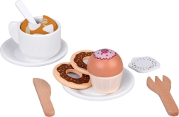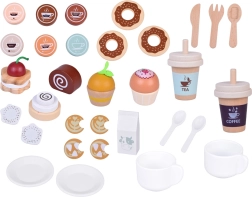 Το πλούσιο σετ αξεσουάρ περιλαμβάνει φλιτζάνια με πιατάκια και κουταλάκια, ποτηράκια με καπάκια για τον δρόμο (Tea, Coffee), χάρτινο γάλα, μαχαιροπίρουνα, διάφορα κεκάκια, μάφιν, μπισκότα και σοκολατάκια, καθώς και απλό μενού. Όλα είναι ιδανικά προσαρμοσμένα στα μικρά χεράκια και υποστηρίζουν τη λεπτή κινητικότητα, τον συντονισμό ματιού–χεριού και τις κοινωνικές δεξιότητες.