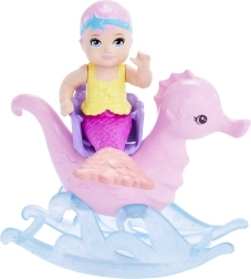 Χάρη στο περιστρεφόμενο καρουζέλ σε σχήμα κοχυλιών και τον κουνιστό ιππόκαμπο, τα παιδιά δημιουργούν εύκολα σκηνές χαλαρωτικής φροντίδας και ζωηρής διασκέδασης. Η κούκλα δεν στέκεται ούτε επιπλέει μόνη της – όμως είναι γεμάτη λεπτομέρειες που κάνουν το παιχνίδι ζωντανό και συναρπαστικό.