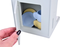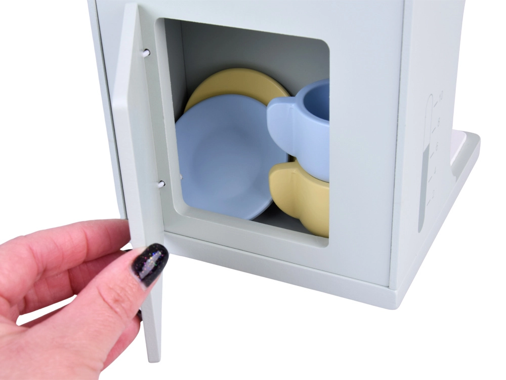 Αυτή η κομψή παιδική ξύλινη καφετιέρα σε μοντέρνες παστέλ αποχρώσεις προσφέρει ό,τι χρειάζεται για παιχνίδι barista. Χάρη στα διαδραστικά στοιχεία, όπως κουμπιά, μοχλός portafilter, δείκτης πίεσης, πλήκτρα και «αφρογαλιέρα», το παιχνίδι δείχνει φυσικό και ρεαλιστικό. Οι λείες άκρες και τα μη τοξικά χρώματα εξασφαλίζουν καθημερινή, ασφαλή χρήση.