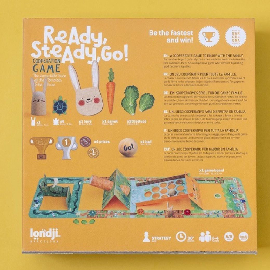 Ξεκινήστε σε μια παιχνιδιάρικη διαδρομή όπου συναντιούνται δύο στρατηγικές: το γρήγορο σπριντ του λαγού και το σταθερό, υπομονετικό βήμα της χελώνας. Το παιχνίδι καλλιεργεί τη συγκέντρωση, τον προγραμματισμό και τη χαρά του κοινού χρόνου. Χάρη στις πρωτότυπες εικονογραφήσεις της LONDJI και την ποιοτική κατασκευή, είναι ιδανική επιλογή για οικογενειακές βραδιές.