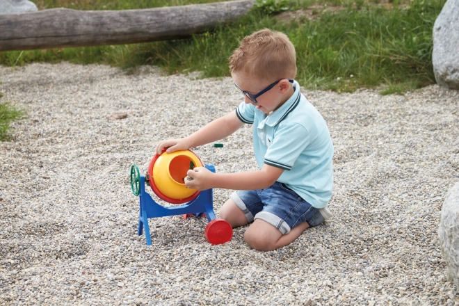 Αυτός ο πολύχρωμος παιδικός αναμικτήρας μιμείται πιστά μια πραγματική κατασκευαστική μηχανή. Με την πλευρική μανιβέλα μπορείτε εύκολα να περιστρέψετε τον κάδο και να αναμείξετε άμμο ή μικρά χαλικάκια. Χάρη στο σταθερό πλαίσιο και τις λείες άκρες, το παιχνίδι είναι ασφαλές και διασκεδαστικό.