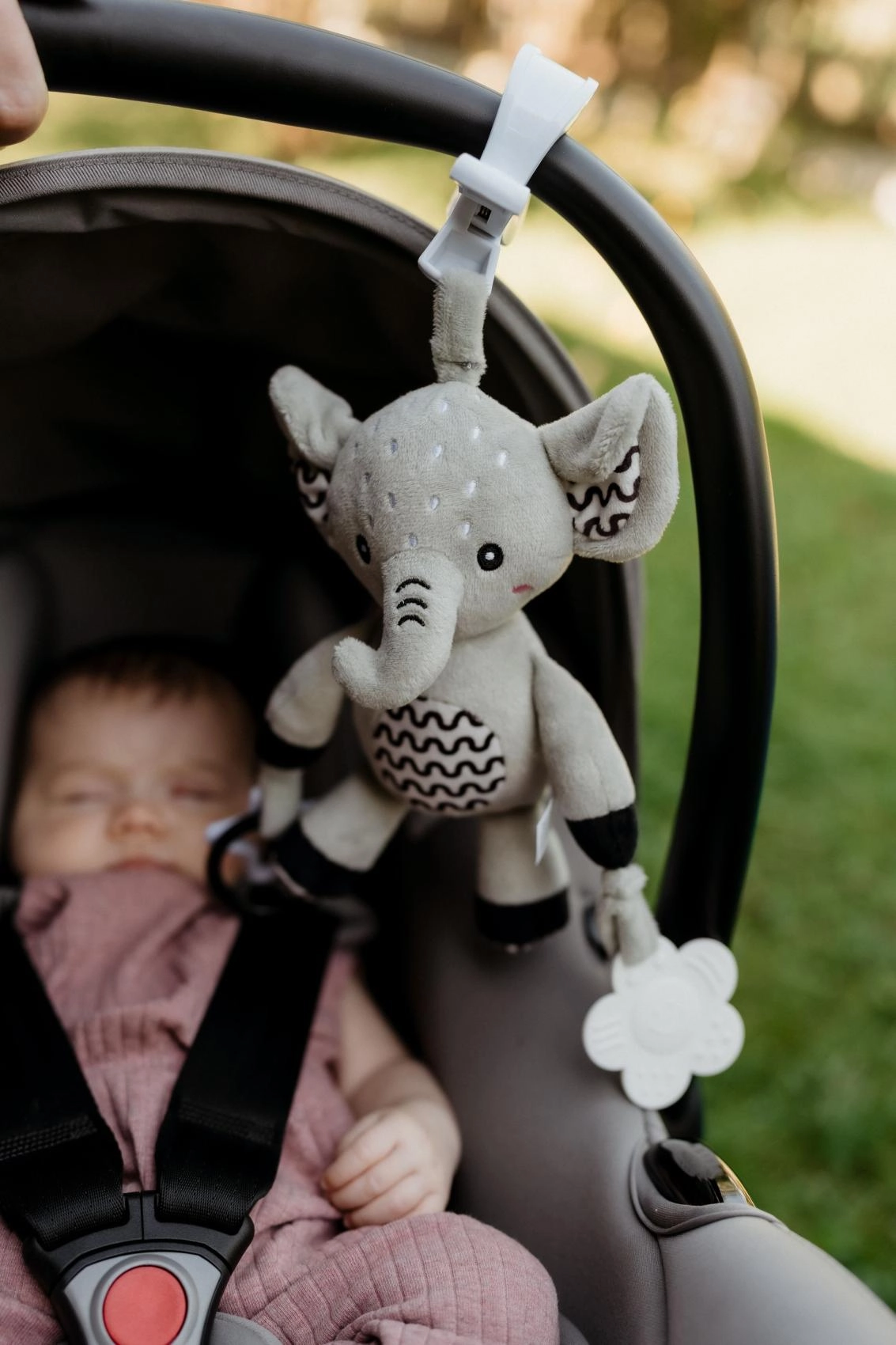 Σε λίγες στιγμές στερεώνετε τον ελεφαντάκο στο καροτσάκι, την κούνια ή τη χειρολαβή του καθίσματος αυτοκινήτου – ιδανική διασκέδαση για βόλτες και στο σπίτι.