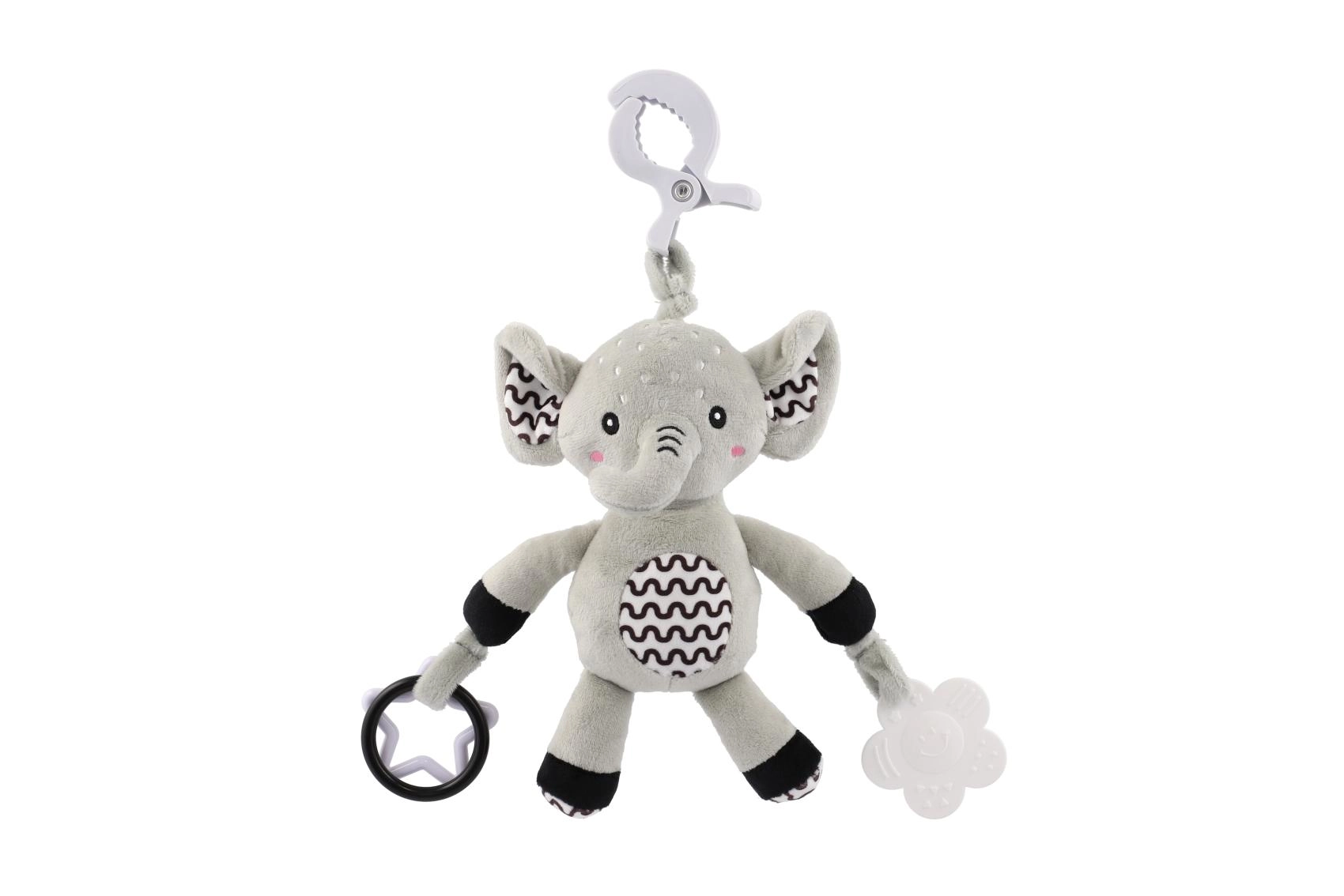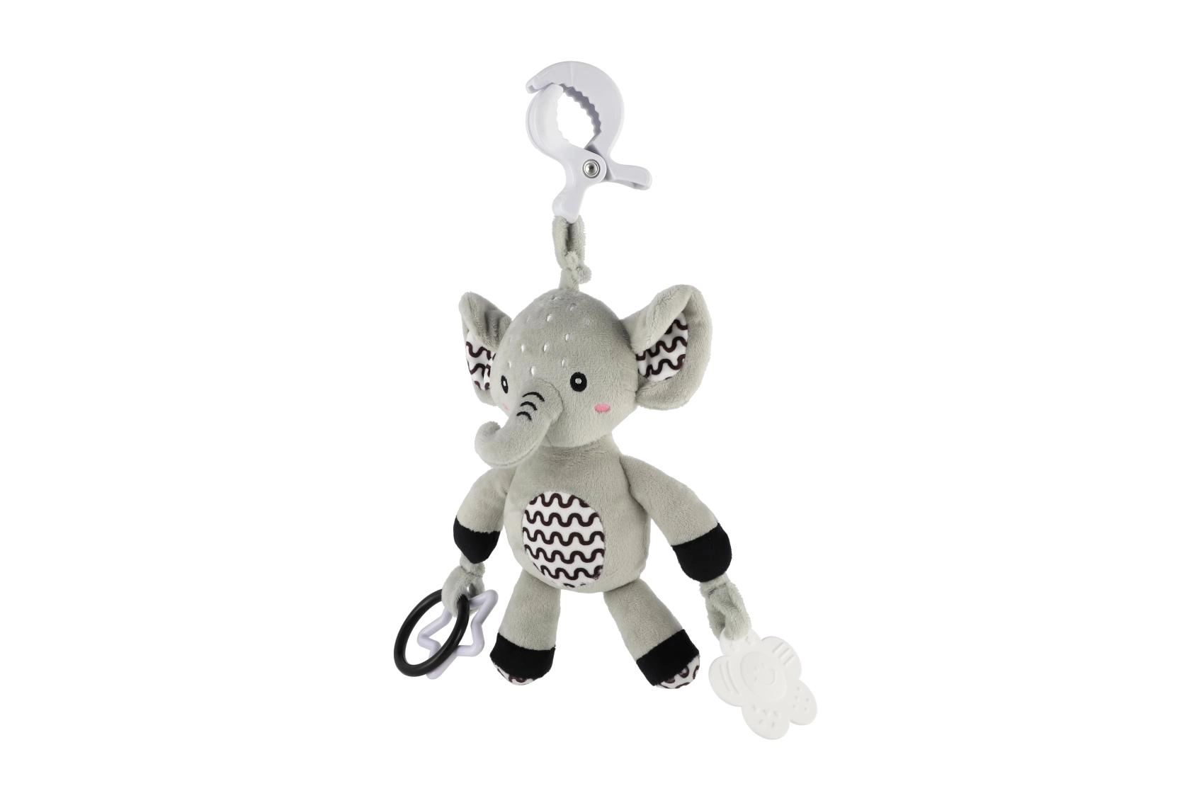 Αξιαγάπητος ελεφαντάκος για τους μικρούς από 0 μηνών. Χάρη στο πρακτικό κλιπ τον στερεώνετε εύκολα στο καροτσάκι, την κούνια ή το κάθισμα αυτοκινήτου. Είναι από απαλό λούτρινο ύφασμα, διαθέτει διακριτική κουδουνίστρα, θροΐζοντα αυτάκια και ασφαλές μασητικό για την ανακούφιση των ούλων. Ιδανικός για αισθητηριακή αντίληψη, λεπτή κινητικότητα και διασκέδαση στο σπίτι και στον δρόμο.