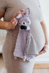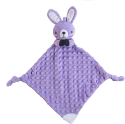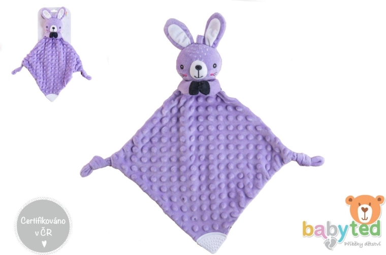 Χαριτωμένο πανάκι ύπνου σε σχήμα κουνελιού από απαλό υλικό minky με ανάγλυφες 3D κουκκίδες, που προσφέρει στα παιδιά από τη γέννηση αίσθηση σιγουριάς και ηρεμίας κατά τον ύπνο. Το ενσωματωμένο απαλό κουδουνίστρα ενισχύει την ακουστική αντίληψη, το μαλακό σιλικονούχο μασητικό ανακουφίζει κατά την οδοντοφυΐα και οι κομπόι στις γωνίες ενθαρρύνουν την απτική ανάπτυξη και το εύκολο κράτημα. Πιστοποιημένο στην Τσεχία για ασφαλή χρήση από 0μ+.