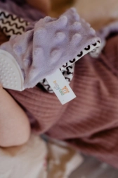 Υπερβολικά απαλό υλικό minky με ανάγλυφες κουκκίδες που προσφέρει στο μωρό ευχάριστη απτική διέγερση και αίσθηση ασφάλειας κατά τον ύπνο.