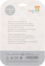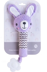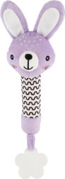 Χαριτωμένο λούτρινο ζωάκι-σφυρίχτρα σε σχήμα λαγουδιού με μαλακό μασητικό θα χαροποιήσει τα μωρά από τη γέννηση. Χάρη στο επίμηκες, εύκολα πιασάρικο σώμα και τον απαλό ήχο σφυρίγματος υποστηρίζει την ακουστική ανάπτυξη, ενώ τα αντίθετα ασπρόμαυρα μοτίβα διεγείρουν την όραση. Το μαλακό μασητικό σε σχήμα λουλουδιού ανακουφίζει τα ευαίσθητα ούλα κατά την οδοντοφυΐα. Κατασκευασμένο από απαλό και ασφαλές λούτρινο, κατάλληλο για τα πιο μικρά. Πιστοποίηση στην Τσεχία εγγυάται ασφάλεια και ποιότητα.