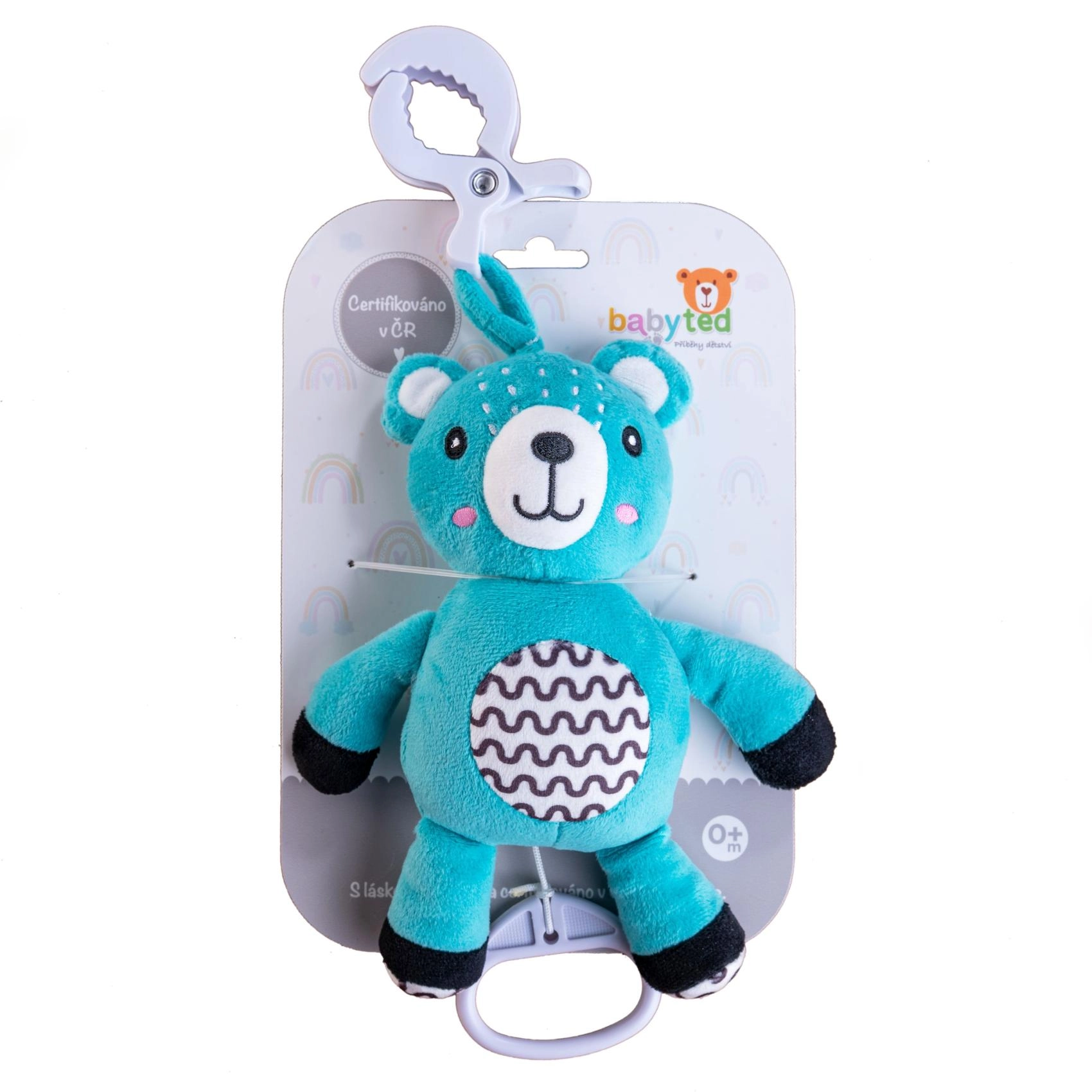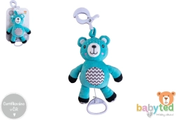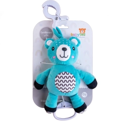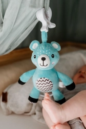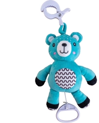 Χαριτωμένο λούτρινο αρκουδάκι με κλιπ και κουρδιστό μουσικό μηχανισμό που παίζει μια απαλή νανούρισμα για να ηρεμεί το μωρό. Κρεμιέται εύκολα σε κούνια, καρότσι ή παιδικό κάθισμα αυτοκινήτου, ώστε να είναι ένας αγκαλιάρικος σύντροφος πάντα στη διάθεσή σας. Το μαλακό απαλό λούτρινο ύφασμα και τα αντιθετικά μοτίβα υποστηρίζουν την αισθητηριακή ανάπτυξη από τη γέννηση. Πιστοποιημένο στην Τσεχία για ασφαλή χρήση 0m+.