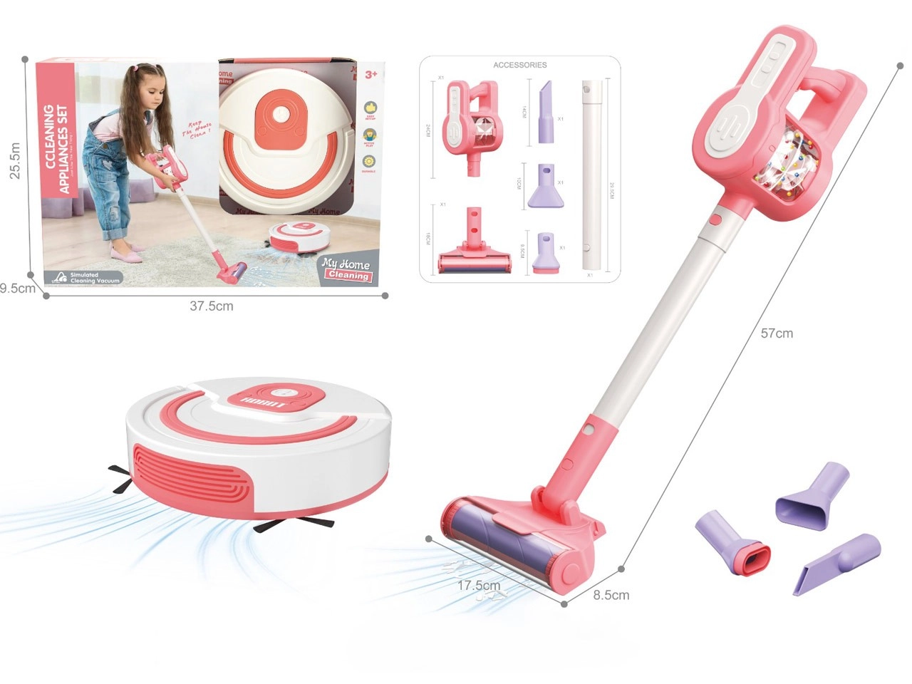 Το παιδικό σετ καθαρισμού προσφέρει ρεαλιστικό παιχνίδι ρόλων στο σπίτι και παρακινεί τα παιδιά να βοηθούν στις καθημερινές δουλειές. Η κάθετη σκούπα με διάφανη θήκη και περιστρεφόμενες μπίλιες μιμείται πιστά το πραγματικό σκούπισμα, ενώ η ρομποτική σκούπα με εφέ αναρρόφησης και περιστρεφόμενες βούρτσες εντυπωσιάζει κάθε περίεργο παιδί.