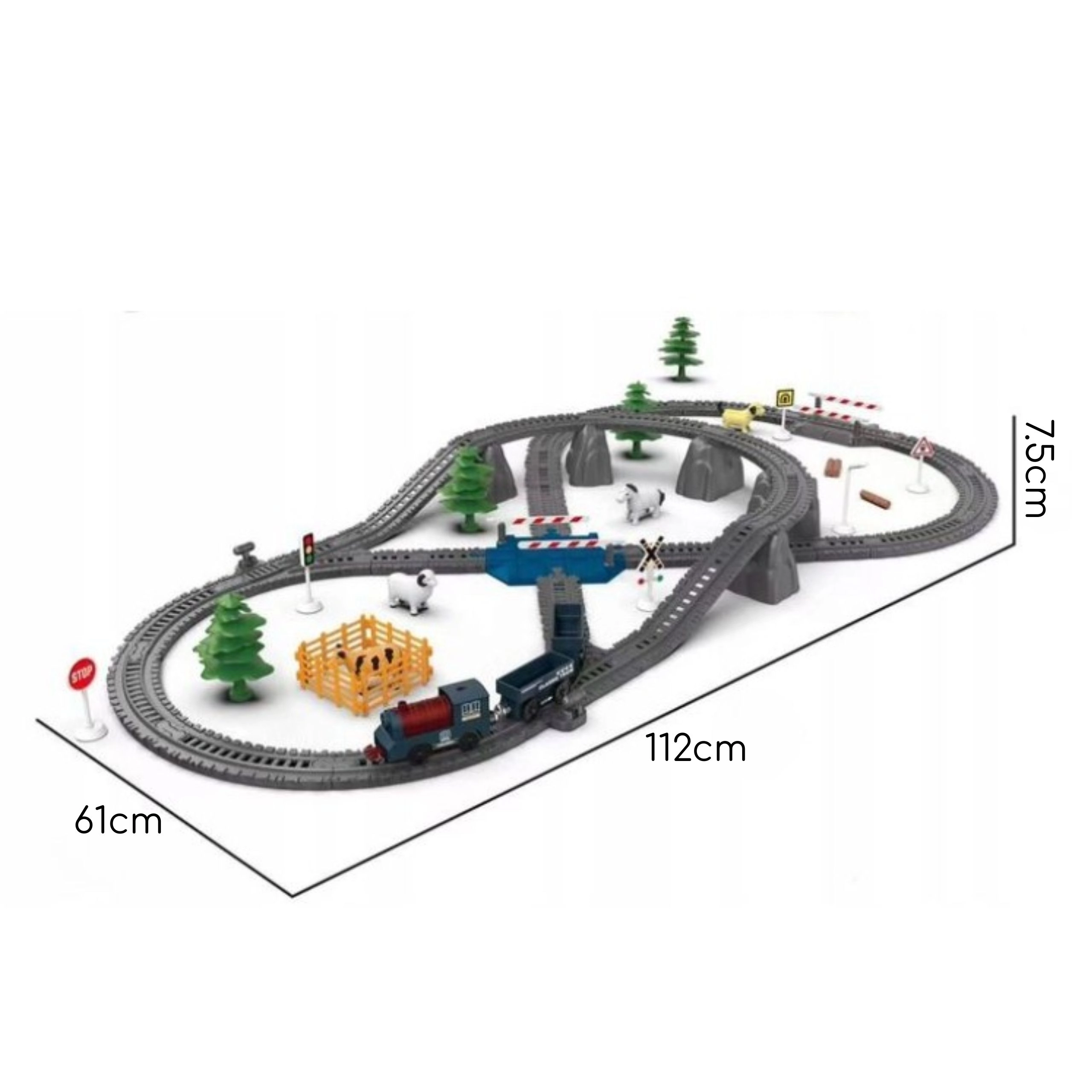 Ανακαλύψτε τον κόσμο των σιδηροδρόμων στο σπίτι με το ηλεκτρικό τρενάκι XXL της WOOPIE. Το σετ με μπαταρίες προσφέρει μακριές ράγες, ποικίλους διακόπτες τροχιάς και ισόπεδες διαβάσεις για τη δημιουργία περίτεχνων διαδρομών. Η ατμομηχανή κινείται μόνη της, έχει μπροστινό φως και ήχους, το σετ περιλαμβάνει φορτηγά βαγόνια, ζωάκια και πλούσια αξεσουάρ για ρεαλιστικό παιχνίδι. Εξαιρετικό παιχνίδι για παιδιά από 3 ετών που αναπτύσσει τη δημιουργικότητα, τη λεπτή κινητικότητα και τη χωρική φαντασία.