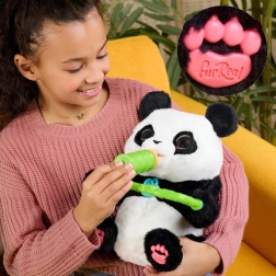 Περιλαμβάνονται μπουκαλάκι και κλαδάκι μπαμπού. Όταν τα φέρετε στο στοματάκι, ενεργοποιούνται ρεαλιστικοί ήχοι πόσης και μασουλήματος.