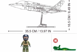 Το σετ περιλαμβάνει αυθεντική μινιφιγούρα πιλότου, φορείς με προσομοιωμένο οπλισμό (πυραύλους και βόμβες) και συναρμολογούμενη βάση για εντυπωσιακή παρουσίαση. Το ποιοτικό πλαστικό ABS εξασφαλίζει αντοχή, σταθερότητα και μεγάλη διάρκεια ζωής. Το σετ είναι συμβατό με προϊόντα άλλων κατασκευαστών. Υποστηρίζει την ανάπτυξη λεπτής κινητικότητας, δημιουργικότητας και υπομονής.