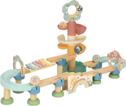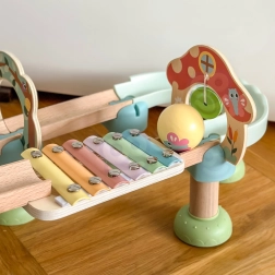Αυτή η ποιοτική πίστα μπιλιών συνδυάζει κίνηση, ήχο και περιέργεια για εξερεύνηση. Τα παιδιά παρακολουθούν τις μπίλιες να κυλούν στις καμπύλες, να περνούν από γεφυράκια και να ενεργοποιούν τη μουσική ενότητα με ξυλόφωνο, ενισχύοντας τον ρυθμό, τη συγκέντρωση και τη χαρά του παιχνιδιού. Οι απαλές παστέλ αποχρώσεις με μοτίβα φύσης δημιουργούν ήρεμη ατμόσφαιρα και ταιριάζουν σε κάθε παιδικό δωμάτιο.