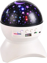 Αυτός ο κομψός λευκός προβολέας αστεριών μεταμορφώνει το παιδικό δωμάτιο, την κρεβατοκάμαρα ή το σαλόνι σε ζώνη χαλάρωσης. Χάρη στην LED προβολή αστεριών και φεγγαριού δημιουργεί ένα γαλήνιο περιβάλλον για ύπνο, διάβασμα ή βραδινή ηρεμία. Το ενσωματωμένο Bluetooth ηχείο επιτρέπει αναπαραγωγή αγαπημένων νανουρισμάτων, ambient μουσικής ή ακουστικών παραμυθιών απευθείας από το τηλέφωνο, το USB ή την κάρτα microSD.